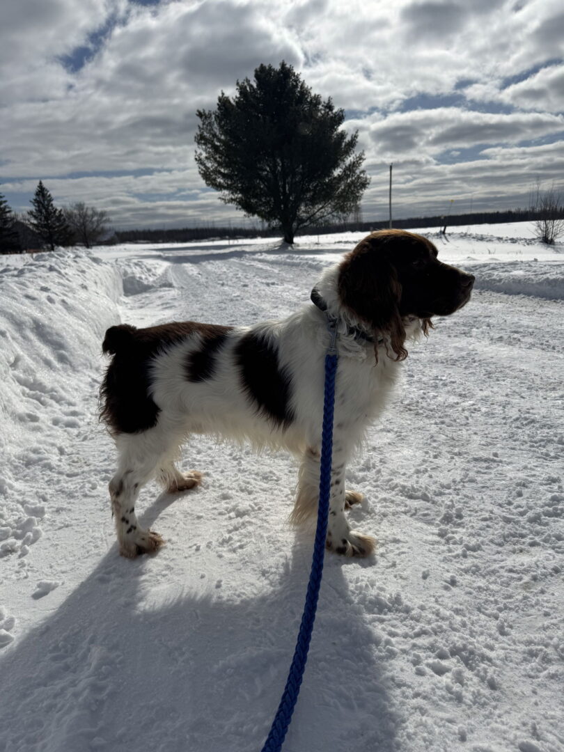 Bud is located in the NORTH BAY area of Ontario, Canada Dog’s Name: Bud. Breed: Springer Spaniel. Weight: 50-60lbs Gender: Male. Spayed/neutered: No. Age: 6-8 Reason for Intake: Unable to give him what he needs as I have a full-time job and no one at home for him. Medical (shots etc): The rescue will update his medical. He was a foster dog that they couldn't find a home for that I took in). Good with dogs: Yes, as far as I know. He lives with dogs here with me Good with cats: Yes, as far as I know. Good with kids: Yes. Good with strangers: Yes. Guarding issues: No. none that I am aware of. Ever bitten a human: No. Ever bitten a dog: No. Behavioural issues: No. House trained: Yes. Crate trained: Unsure. Destructive when left alone: No. Barks when left alone: No. Leash skills: He goes on a leash but pulls. Handling issues: No. Known commands: Not that I've seen Food on now: Harvest Brand from Peavey and Canadian Tire. Medical issues: None that I am aware of. Personality, likes/dislikes: None that I am aware of. Loves attention. Best home scenario: Family or older couple (other than the pulling on the leash). He's a great dog