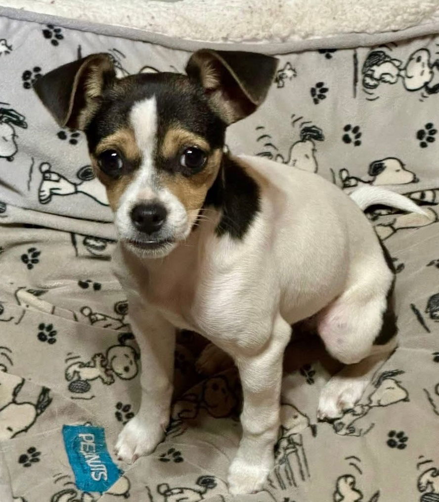 Meet Bugs Bean! Buggs Bean is a 4-month-old rat terrier mix and a tiny 5-pound bundle of pure love and happiness. This happy-go-lucky little girl is full of spunk, fun, and kisses—and her adorable underbite will steal your heart in about two seconds flat. Buggs Bean loves her people more than anything and just wants to be close, cuddled, and adored. She’s playful and silly, always ready to brighten your day, but she also melts right into your arms when it’s time to relax. She’d be wonderful with another dog to play with, or just as happy as an only pup as long as she’s doted on like the princess she is. If you’re looking for a tiny best friend with a huge heart, Bugs Bean is ready to love you forever. An Adoption Application for this dog can be found and submitted online. http://www.angelsrescue.org/adopt/adoption-forms Please be sure to like our Facebook page: https://www.facebook.com/angelsrescue. Email inquiry@angelsrescue.org Note: Some apartments and neighborhoods have breed restrictions. We verify rental policies and adhere to any regulations. Please ensure you understand those restrictions before choosing a dog.