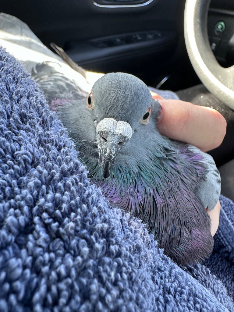Sweet Buoy is a one-winged feral who needed medical care when he was hit by a car and his wing was ripped off. Palomacy took him and gave him love and necessary medical attention. He (or she) is a gentle, shy bird who loves the company of other birds.Please apply to adopt http://www.pigeonrescue.org/birds/apply-to-foster-or-adopt/