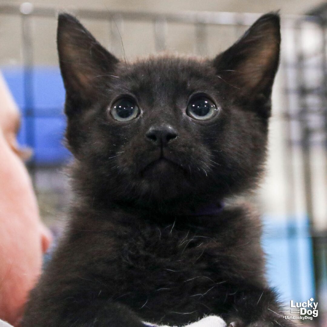 Please contact Diana Chotoo (diana.chotoo@luckydoganimalrescue.org) for more information about this pet.Cute kitten looking for a forever home!BURGOMASTER NEEDS A FOSTER OR FOREVER HOME!!!! Name: Burgomaster Best Guess for Breed: Domestic Short Hair Best Guess for Age: 13 weeks as of 10/28/25 DOB: 7/29/25 SEX: male Approximate Weight: 1lbs 11 oz Coloring: Black Type of Hair: Short Gets Along With: Because of his young age, Burgomaster will likely get along with other cats, dogs and kids with an acclimation period. We’re happy to help with tips and tricks! Currently Living at: Foster in DC! Litter: Bandersnatch, Barnabas, Baltus Van Tassel, Burgomaster I am Looking For: My loving forever family! Hi! I’m Burgomaster, and I am a cute little kitten! I won’t ask for much- just some love, cuddles and lots of toys so I can run and play and be my kitten self. What My Foster Says About Me: Coming soon! Kitten Vetting Requirements : Your kitten may not be fully vaccinated upon adoption. You will be responsible for providing whatever remaining vaccines are needed to complete the kitten vaccine series. Due to this kitten’s young age, she/he has not yet been spayed or neutered. As part of the adoption contract, it will be your responsibility, as the adopter, to ensure that this is done no later than 1/31/26. There are NO EXCEPTIONS and NO EXTENSIONS to this date. A nonrefundable spay/neuter deposit will be collected if you would like Lucky Dog to pay for this animal to be altered at one of our low-cost partner vets. TO ADOPT: The adoption fee for this kitten is $220 ($380 for two cats or kittens adopted together), which includes the cost of routine vetting. If you are interested in adopting, please complete the Adoption Questionnaire online at bit.ly/adoptaluckycat Lucky Dog Animal Rescue does our best to provide accurate information about the cats we have for adoption. That said, we cannot make any guarantees about age, breed or temperament. Thank you for contacting Lucky Dog Animal Rescue and helping to save a life! Please visit us online at www.luckydoganimalrescue.org . BE A FOSTER!!! Fosters make it possible for Lucky Dog Animal Rescue to save and care for homeless and abandoned dogs! To learn about fostering, please contact fostering@luckydoganimalrescue.org BE A SPONSOR!!!! Sponsors help Lucky Dog support the many dogs we save. To learn more about sponsorship, please contact info@luckydoganimalrescue.org !
