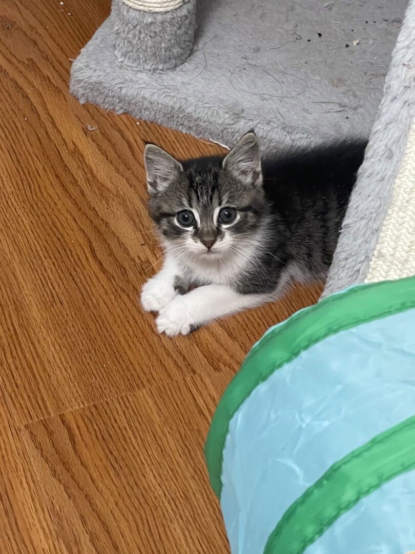 See Button’s HomepageGo to our official websiteThis little guy was a surprise door drop at our rescue — and what a sweetheart he’s turned out to be! Button is comfortable around people and already winning hearts with his playful, gentle personality. He absolutely adores other kittens his age and can spend hours racing through kitten mazes, chasing toys, and exploring every nook and cranny. If you’re looking for a friendly, fun-loving companion who’s full of curiosity and affection, Button might just be your perfect match.