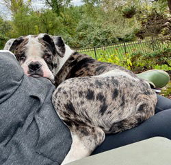 Age:1.5 Weight: 76 Location: New Hope, PA Good with other dogs?: Yes. He's very submissive and will pancake himself to the ground. As soon as he knows it's okay (either vocal reassurance "It's ok, Buzzy" or welcoming, loose body language) he jumps up though and wants attention. He does this with humans and dogs. Good with cats? unknown, will not be adopted to a home with a cat Good with children? OK for kids over: 10 Activity Preference: Needs a couple walks a day., Needs in-house activities, Up for a long hike any day., Low maintenance overall but needs quality outside time., Will go with the flow IQ: Smart Buzzy's favorite things: He loves other dogs and playtime, He loves to snuggle w/people and other dogs. Buzzy is good at: meeting people, meeting dogs, staying in a crate, behaving in the house, going for car rides, walking on a leash, cuddling, playing, following commands Ideal home: another dog, someone at home most of the day, a fenced yard Training Needs: Health issues: none. Meet Buzzy He's a cuddler. He loves to lay on the couch with us or on top of us. He's not pushy about it though. If you ask him to move or get off of you, he will. He doesn't do much licking or "kissing". He sits for treats without you even asking and he takes them gently. He rides very well in the car. He did end up in the front seat with me but curled up into a little ball and slept. He walks well with only a leash and collar. We've had absolutely no accidents in the house. He's very well trained, he even barks at the door to let us know when he needs to go out. Right now we're feeding him Fromm Four Star kibble and a little bit of raw. PLEASE READ: Adopters will not be considered without completing an application. Please visit www.AmericanBulldogRescue.org to apply! Remember – Adoption is always the best option! If you can't help by adopting a homeless pet, please consider making a tax-deductible donation to American Bulldog Rescue, 4 Terry Drive, Suite 1D Newtown, PA 18940 or paypal AmericanBulldogRescue@verizon.net. We cannot place dogs in homes with children under 10 unless that dog has lived with kids or is in a foster home with kids. Thank you. To be considered for adoption, you must apply using our free, online application. Our dogs are fostered in our volunteers’ homes, not in a central shelter/location. Only approved applicants are put into contact with the foster family to setup a meeting with the foster dog. Visit our Adoption Policies web page for more information and a link to our application: http://americanbulldogrescue.org/adoption-policies/.
