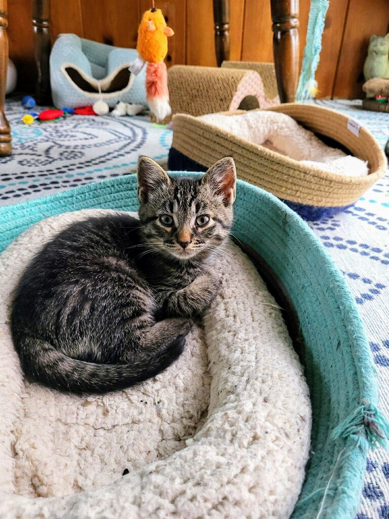 See C285 litter Jersey’s HomepageGo to our official websiteYou can fill out an adoption application online on our official website.HDDCR requires a spay/neuter contract by the adopter if puppies and kittens in our care are too young for sterilization. This is a form the adopter signs at the time of adoption, confirming that they will get the pet spayed/neutered by a certain date. We will hold a $50 deposit on top of the adoption fee until we receive proof from a veterinarian that the dog was spayed/neutered. The $50 deposit will then be returned to the adopter.​ Jersey is a sweet dark gray tabby that likes to sit in your lap and purr and give kisses. He likes to play and does well with other cats. Happy Days Dog and Cat Rescue microchips all dogs and cats before adoption. Microchips are implanted between the shoulder blades and are another form of identification should the animal get lost. The microchips are registered to Happy Days Dog and Cat Rescue. The adopter's information is added once the adoption is complete. The adopter is responsible for a $19.99/Year registration fee or a $45.00/Lifetime registration fee to change information. Dogs and Cats still need to have collar with tags should they get lost.