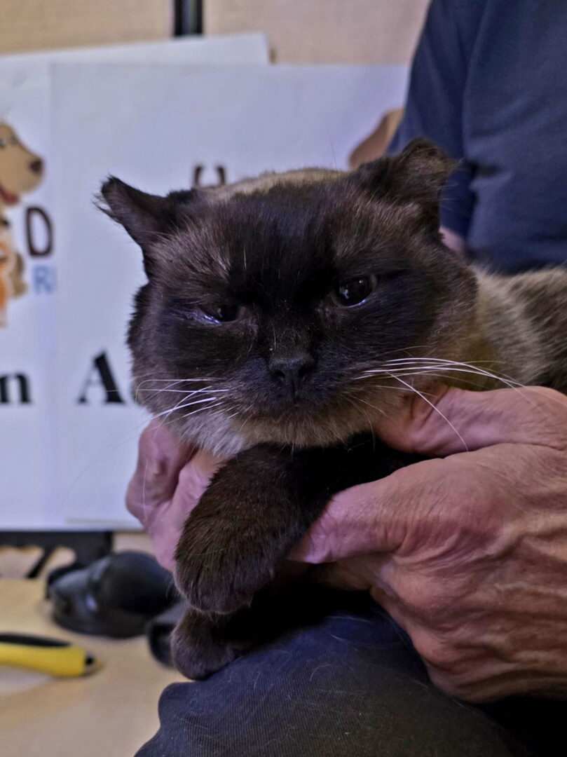 See C291 Litter Twila (Mother)’s HomepageGo to our official websiteYou can fill out an adoption application online on our official website.Twila is a full-grown adult and is not interested in kitten antics, thank you. Twila is similarly uninterested in outside. She had her paws full when she was dumped in the country and survived for more than three full years on her own. The tips of her ears are frostbitten off from cold winters and her teeth show wear and tear from years of eating what she could find. Twila struggled big time, having multiple litters of babies and trying to keep them alive. In her foster home, she has soft beds to sleep on, dinner is prepared for her, and fresh water magically appears in her bowl, so there is no need for outside. Twila loves being brushed and pet. She will be awake in the evening for her daily interactions. Otherwise, she'll spend most of her time curled up in a comfy nook. She will come to sit with you and watch TV or curl up near you in bed. Twila is estimated by our vet at 6 years old. She doesn't have energy for zoomies, but sometimes she will deign to bat at some yarn. This battle-hardened warrior is ready for retirement. She doesn't like dogs and she doesn't really like other cats, either. She'd prefer to be a spoiled, solo kitty. She doesn't have any problems with humans as long as her requirements for rest, food, water, and adoration are fulfilled. If you're a night owl looking for a chill companion, Twila is your girl. Twila is a kitty where you have to earn her respect, but once you do, she will be your beautiful, devoted, haughty and somewhat judgmental companion for the rest of her life. Twila is: microchipped spayed FIV/FELV negative up to date on FVRCP and Rabies vaccinations dewormed Happy Days Dog and Cat Rescue microchips all dogs and cats before adoption. Microchips are implanted between the shoulder blades and are another form of identification should the animal get lost. The microchips are registered to Happy Days Dog and Cat Rescue. The adopter's information is added once the adoption is complete. The adopter is responsible for a $15.00/Lifetime registration fee in addition to the adoption fee. Dogs and Cats still need to have collar with tags should they get lost.