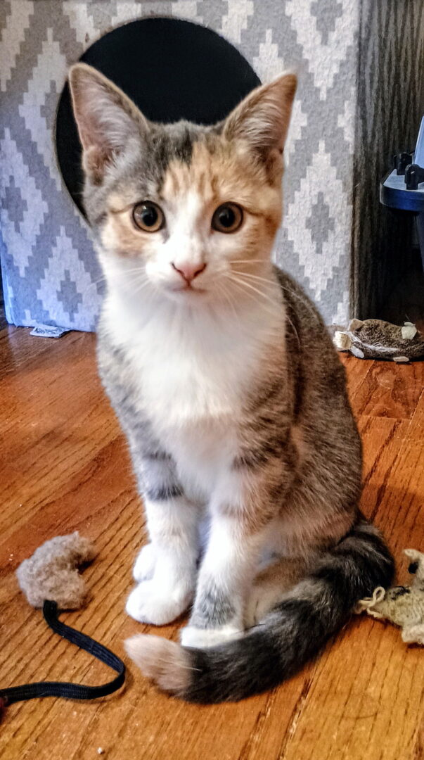 See C302 Litter Princess Aurora’s HomepageGo to our official websiteYou can fill out an adoption application online on our official website.Princess Aurora is a sweet beautiful kitten. She does take time to get comfortable in new settings and with new people. She is on the calmer side for kittens but does like to play and gets along well with her sister Princess Ariel. If you are interested in making princess Aurora a part of your family fill out an application at Happy Days Dog and Cat Rescue. Happy Days Dog & Cat Rescue requires a Spay/Neuter Contract by the adopter if puppies and kittens in our care are too young for sterilization at the time of adoption. This is a form the adopter signs at the time of adoption, confirming that they will get the pet spayed/neutered by a certain date. HDDCR holds a deposit [$50 for dogs, $25 for cats] in addition to the adoption fee until we receive proof from a veterinarian that the dog or cat was spayed/neutered by the date stipulated on the Spay/Neuter Contract. The deposit will be refunded to the adopter if spay/neuter was done according to the Spay/Neuter Contract signed by the adopter. Happy Days Dog and Cat Rescue microchips all dogs and cats before adoption. Microchips are implanted between the shoulder blades and are another form of identification should the animal get lost. The microchips are registered to Happy Days Dog and Cat Rescue. The microchip is transferred to the adopter once the adoption is complete. The adopter is responsible for a one-time $15 microchip enrollment fee, paid at the time of adoption. Microchips are enrolled with AKC Reunite. Dogs and Cats still need to have collar with tags should they get lost.