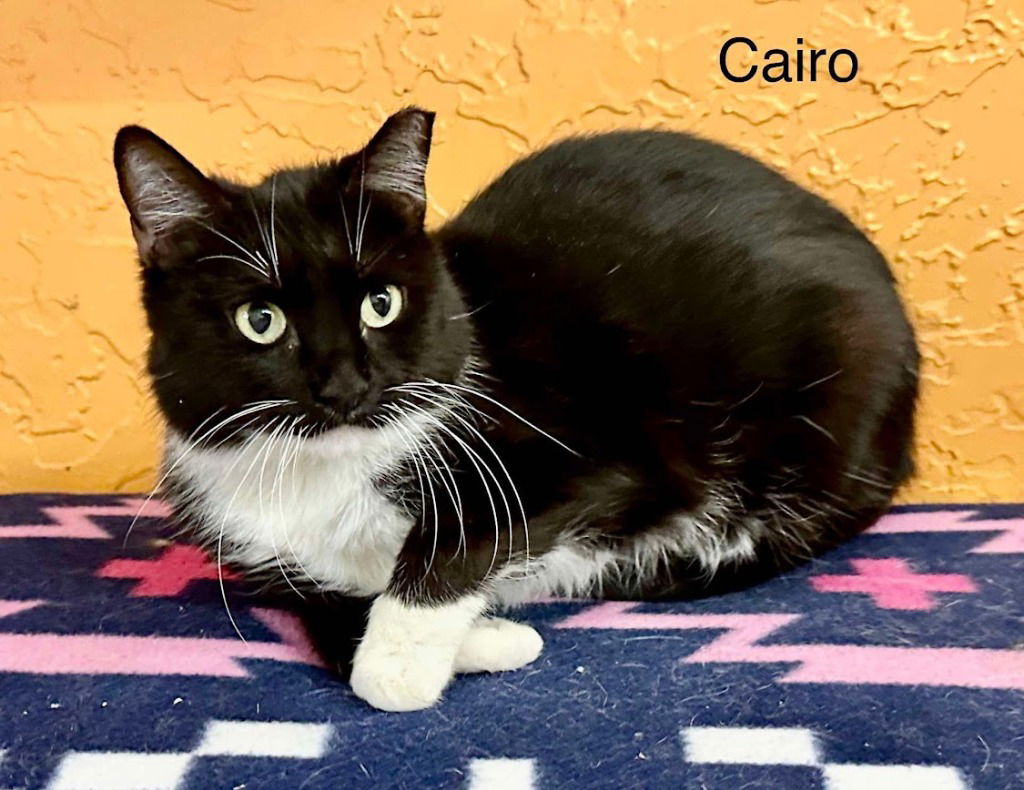Cairo is a quiet love bug, She loves to get scratched and gives head bops in return! She is so cute with her soft, black/white fur and long whiskers. She is a tiny, little angel who was rescued from the California wildfires. She is good with other cats and always uses her litter box.Come and meet this beauty at PAWS! Our pets are spayed/neutered, microchipped, dewormed and current on vaccinations before their adoptions are finalized. Please call PAWS at 435-688-9748 for more information about this pet. If you are interested in adopting, please visit www.stgeorgepaws.org/adopt and submit an application. Our office hours are 11 AM-3 PM Tuesday through Saturday. We are closed Sunday and Monday.