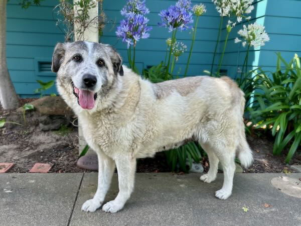 See CALIFORNIA, PACIFIC GROVE; "NANA"’s HomepageGo to our official websiteYou can fill out an adoption application online on our official website. LOCATION:PACIFIC GROVE, CALIFORNIA EMAIL: info@peaceofminddogrescue.org CALL 831-718-9122 AVAILABLE FOR: FOSTER OR ADOPTION NAME: "NANA" DOB: ESTIMATED AUG 2019 BREED: EST ANATOLIAN PYRENEES GENDER: SPAYED FEMALE SIZE: 70 LBS HEALTH: IN GOOD HEALTH NOTES: Like her namesake from Peter Pan, Nana is the picture of loyalty and love. This sweet senior has a gentle, caretaker's heart. She bonds deeply with her people and will happily be your steady, loving shadow. Nana is entering her golden years, and like many seniors, she can sometimes get a little confused or disoriented. She's hoping for a patient, understanding home that will give her comfort, routine, and reassurance when she needs it. In return, she'll give you unconditional love and a calm, devoted companionship that only a senior dog can offer. Independent as well as affectionate, Nana is just as content to nap on the porch or lounge in the yard as she is to enjoy a car ride or a slow stroll. She walks beautifully on leash and loves to take in the world at her own pace. She also gets along well with gentle dogs and would thrive in a quiet, peaceful home where she can feel safe and adored. Sweet Nana joined us from Hitchcock Road Animal Services after she was found as a stray. This is a courtesy listing. This dog is currently adoptable but is not a part of or associated with National Anatolian Shepherd Rescue Network (NASRN), including NASRN’s adoption and/or fostering programs. The information listed for each animal was provided by individual caregivers and was not generated or verified by NASRN. NASRN makes no representations related to these animals . As with all adoptions, NASRN encourages potential adopters to gain as much information as possible before adopting these animals , including but not limited to temperament testing, consultation with a trainer, and consultation with a veterinarian.