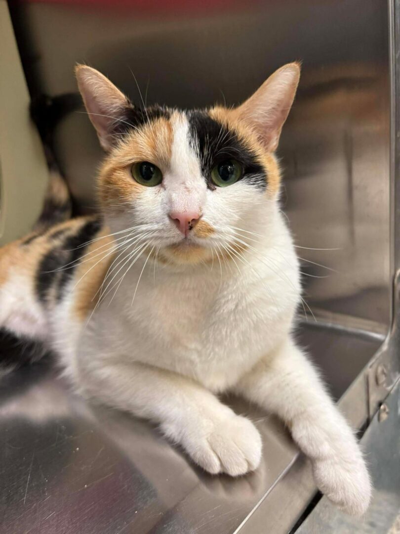 Date of birth: 10/27/2024 |Meet Callie, a young cat with a heart full of love. Initially shy, she reveals her sweet, cuddly nature once she feels secure. Callie enjoys quiet moments and gentle pets, making her a perfect companion for cozy evenings. Her gentle purring and affectionate nuzzles are sure to melt your heart. Adopting Callie means giving her the forever home she deserves, where she can flourish and share her limitless affection. | Cats: Likes with proper introduction | Dogs: Unknown, has not met a dog | Kids: can live with children over the age of 5| Health information: All cats and kittens are spayed and neutered, preventatively dewormed, and microchipped. In addition, they are FeLV/FIV tested and vaccinated as appropriate by age. | Interested in adopting? Apply to meet and adopt. | How to apply: please fill out application at https://www.savingonelife.org/adopt/apply/