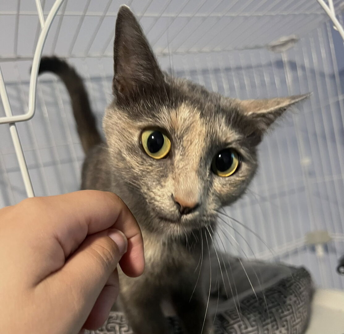 See Callisto’s HomepageGo to our official websiteYou can fill out an adoption application online on our official website.Estimated Date of Birth 8/2/23 Callisto is a sweet dilute tortoisehell, estimated to be just around a year old. She wandered up pregnant to a rescuers home. The rescuer was able to provide her a safe space for her to give birth, and just in time too, as she gave birth to her 5 kittens 4 days later! Although she seemed scared while she was outside, it turns out she’s the complete opposite. As soon as she realized she and her future babies (at the time) were safe and inside, she was more than happy to demand pets and cuddles from her foster who reached out to Proverbs 12:10 seeking assistance on her and her babies’ behalf. Now that she’s done a great job at raising her babies, and retiring from motherhood, this gorgeous girl would like a chance to forever kitten, where patient humans are going to dote on her, and help her regain that confidence she’s hiding! Her favorite things are wet food, all sorts of good attention: chin/ear/tail/scratches, pets, and even chest rubs! She’s willing to get pedicures (aka nail trims) and get carried around by her future humans, and in turn she would like to bake them her air biscuits and provide her excellent services as a conversation partner. *unsure at this time about other cats/ but she does seem to get excited when she sees the resident cats peeking around the corner – probably the right temperament/personality match * tortitude is still there * dogs unknownAdoption Fee: $130Callisto is spayed, microchipped, up to date on age appropriate vaccinations and negative for Feline leukemia and FIV.