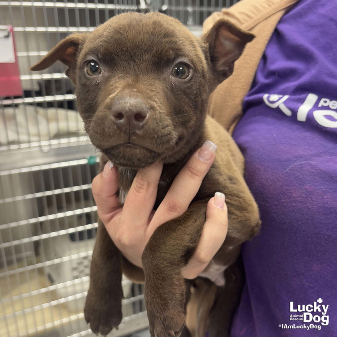 super cute squish pup ISO his family! CAM NEEDS A FOSTER OR FOREVER HOME!!!! Name: Cam Best Guess for Breed: Lab and terrier mix Best Guess for Age: 2 months as of 2/14/25 SEX: Male Estimated Weight (puppies’ weights change quickly!): 10 lbs as of 2/11/25 Gets Along With: Most puppies are in the prime of their socialization window and will do well with other dogs, cats and kids so long as they receive patience and proper training. Currently Living at: Rural shelter; needs a foster or forever home in the DC area to get his freedom ride up here! Special Adoption Considerations: Puppies under 6 months of age need to have multiple potty breaks/exercise throughout the day. Potential adopters with a standard 8-hour workday must be willing to make arrangements to meet the needs of their puppy. Cam is Looking For: Hiya! I’m Cam and I’m ISO my family for play time and snuggles and more play time! In a little while I’ll be ready to go on walks and explore my new neighborhood and the rest of the world with you. I want to go to puppy school, too, so I can learn to be the bestest boy. I promise to give you lots of tail wags and kisses – and to always be by your side. What do you say? Is there a space on your lap and in your life for me? What My Foster Says About Me: We will update this once he has arrived in the DC area and spent some time with his foster. Puppy Vetting Requirements: Lucky Puppies have had their age appropriate vaccines, but may not yet be “fully” vaccinated. It is the adopter’s responsibility to ensure that the remaining puppy vaccines are given at the appropriate time. Please also keep in mind that, until your puppy is fully vaccinated, they are at greater risk for illness than an adult dog. Due to this puppy’s young age, she/he has not yet been spayed or neutered. As part of the adoption contract, it will be your responsibility, as the adopter, to ensure that this is done no later than June 14, 2025. There are NO EXCEPTIONS and NO EXTENSIONS to this date. A non-refundable spay/neuter deposit will be collected if you would like Lucky Dog to pay for this animal to be spayed/neutered at one of our low cost partner vets. Your new puppy will need to work on their house training and will also need to go to obedience school so they can grow into a well-socialized dog! TO ADOPT: The adoption fee for this puppy is $485, which includes the cost of routine vetting and transport from the shelter. If you are interested in adopting, please complete the Adoption Questionnaire online bit.ly/adoptaluckydog Lucky Dog Animal Rescue does our best to provide accurate information about the dogs we have for adoption. That said, we cannot make any guarantees about age, breed or temperament. Thank you for contacting Lucky Dog Animal Rescue and helping to save a life! Please visit us online at www.luckydoganimalrescue.org . BE A FOSTER!!! Fosters make it possible for Lucky Dog Animal Rescue to save and care for homeless and abandoned dogs! To learn about fostering, please contact fostering@luckydoganimalrescue.org! BE A SPONSOR!!!! Sponsors help Lucky Dog support the many dogs we save. To learn more about sponsorship, please contact info@luckydoganimalrescue.org . ​