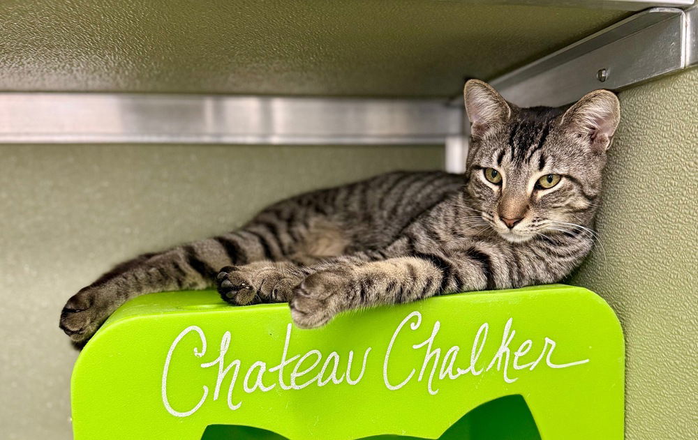 Meet Cameron, a striking gray tabby kitten with an adorable face and boundless curiosity. This high-energy explorer loves his scratcher, bird wand toy, and gazing out the window, always on the lookout for adventure. Cameron is bonded to his buddy Ferris, and they’re searching for a home together where they can play and grow side by side. While he’s still skittish about being held or petted, his love of food makes him highly trainable, and with patience (and plenty of treats), he’s sure to warm up in his forever home. Cameron is ready to bring fun and charm to your family! He is FIV/FeLV negative, up-to-date on vaccinations, flea-treated, dewormed, microchipped, and neutered. His birthday is estimated to be around 4/7/2024.