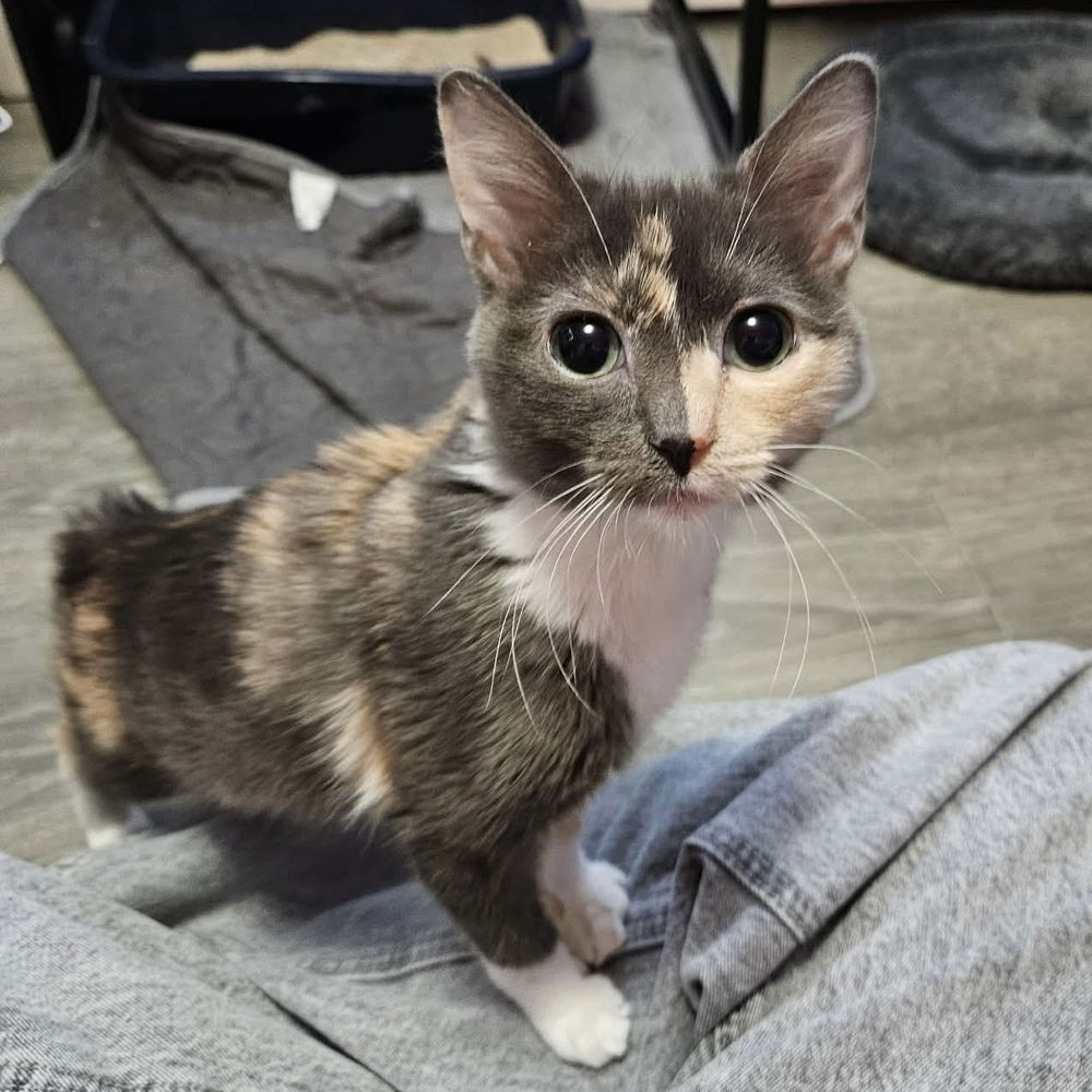 Meet Canary – The Dainty Little Huntress with a Big Purr and Even Bigger Eyes Canary may look delicate and dainty, but don’t let that fool you — this girl is pure playful energy wrapped in the softest fur imaginable. With her big, beautiful eyes (seriously, they could melt steel), she has a way of looking at you that instantly turns your heart to mush. If she had a superpower, it would absolutely be heat vision — because one glance from this sweet girl and you’re done for.Because she is still young and full of kitten energy, Canary will need to be adopted into a home with another kitty friend to socialize with — ideally another young, playful cat who can keep up with her all-day play sessions. She has done well with all the people (including older, respectful children) she has met. She hasn’t yet been introduced to other types of animals yet, but with a slow and appropriate introduction, she should do well. She can be startled by loud noises, though she settles quickly, so a quieter home may be preferred — but overall she is quite adaptable. While she is independent enough to be okay on her own for periods while her humans are at work or out socializing, she is truly a lover at heart and would be happiest in a home where people are around often to shower her with attention.Playtime is Canary’s absolute favorite thing in the world. She can play all day long without missing a beat! Toy mice? Yes, please. Little balls with strings? She’ll proudly carry them around in her mouth like prized trophies. Feather wands and fishing poles? She’ll leap, twist, and stalk with impressive determination. She especially loves having a little hiding spot where she can crouch low and “hunt” her prey before pouncing. It’s adorable — and impressive. This dainty little lady also loves her food. She gets wildly excited at mealtime and eats with surprising gusto, making the funniest little gremlin-like “nom nom nom” sounds that will absolutely make you laugh.And when the great hunt is finally over? That’s when her affectionate side takes center stage. Canary will reach out with her tiny paw when she wants attention (which is beyond adorable), rub against your legs while purring loudly to say hello, and then curl up beside you once she’s ready to rest. She loves being pet and will happily soak up affection. Although being held is acceptable only briefly, she loves to settle down next to you on her own terms like the independent queen she is. Her foster family says they will miss her loud purring and sweet cuddles more than anything.Canary is playful, affectionate, independent yet loving — the perfect balance of spunky and sweet. If you’re ready for a soft-furred, toy-carrying, purring little companion (with a built-in comedy routine at dinner time), Canary is ready to fly straight into your heart. WE DO NOT HAVE A PHYSICAL LOCATION AS WE ARE A FOSTER-BASED ORGANIZATION. PLEASE SUBMIT AN APPLICATION TO BE IMMEDIATELY CONNECTED TO A SCREENER.Apply at online application (catsfff.org/adopt)View all of our adoptable cats here (catsfff.org/cats)Our adoption fees are listed here (catsfff.org/adoption-fees)