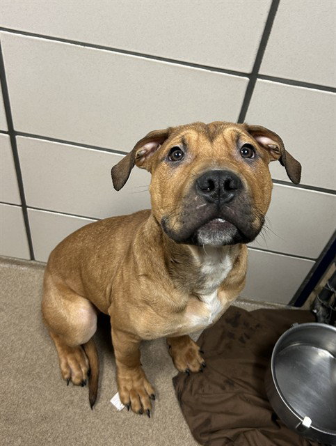 Hi! My name is Canyon! I am a big, goofy, boy who is growing like a weed. I don’t know my size and will need a patient family to help me work on my manners. I would do best in a home with older children due to me being in my jumping and teething era. Please come meet me today! Weight 45.3# and growing!
