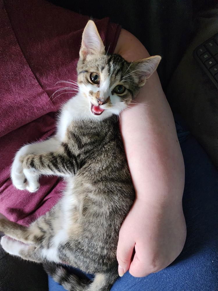 If you are interested in adopting an ARPO pet, please visit our website, for details about our fees and process, and to complete our Adoption Application. ARPO limits adoptions to within 50 miles of Indianapolis. We do not have a shelter; all pets are in volunteer foster homes. Cappuccino loves to play with his brothers. He loves attention and purrs when you give it. He gets the zoomies late night/early morning. Cappuccino likes spending time with his person laying in bed and alsp attacking their feet. Cappuccino loves to lay with Biscotti and plays with him frequently. He likes a good nap on top of the blanket. He likes to make things a toy that aren’t a toy. Cappuccino likes to be picked up and be held like a baby. He is sweet and rambunctious. He’s looking forward to meeting his forever family. He is bonded with Biscotti and needs to be adopted together. He likes laying on pillows. He likes to pounce when he plays. He is neutered, UTd on vaccines and tested negative for FIV/FelV. Litterbox trained. His birthday is July 30th, 2024. Cappuccino Catfe will be at Nine Lives Cat Cafe 12/26/24 until 1/7/25. To schedule a time to meet him and other ARPO kitties, please visit ninelivescatcafe.com . Normal ARPO adoption requirements still apply.If you are interested in adopting an ARPO pet, please complete the online Adoption Application. If you would like to donate to this pet's care, please click here.