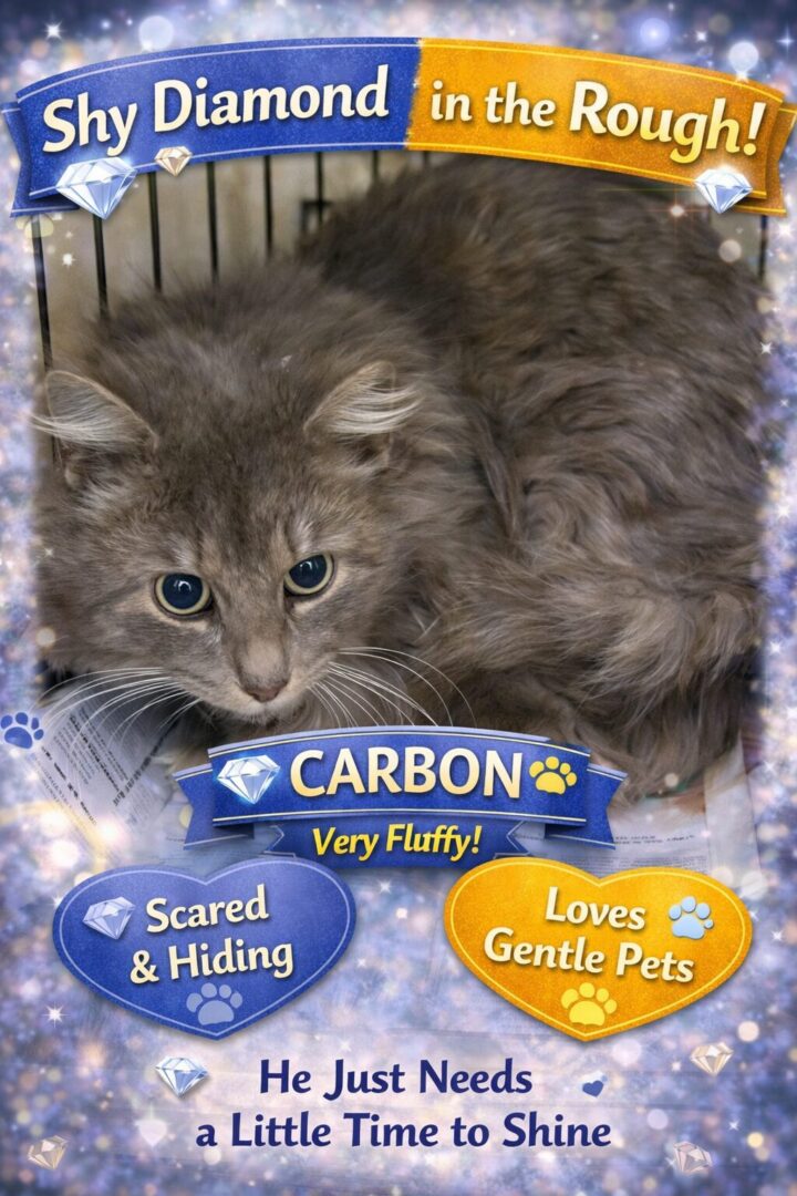 Carbon – A Gentle Soul Waiting to Trust . Carbon is a beautiful, soft-furred kitty who is still feeling a bit unsure in the busy shelter environment. New places and unfamiliar sounds can be overwhelming for sensitive cats like him, so he is taking things slowly while he adjusts. With a calm voice and gentle approach, Carbon begins to relax and accept soft pets once he feels safe. Underneath his wary exterior is a sweet boy who simply needs someone patient enough to give him the time he deserves. Carbon would do best in a quiet, loving home where he can settle-in at his own pace. With patience, kindness, and a little understanding, cats like Carbon often blossom into deeply loving companions. Shy but very sweet. Enjoys gentle pets once he trusts you. Would thrive in a calm home. A soft, sensitive kitty with lots of love to give. Carbon is just waiting for someone who will see past his fear and give him the safe forever home he deserves. As another option, maybe your would like to foster Carbon. Carbon is now playing in our Brandywine PetSmart adoption center while awaiting your visit. Please submit our no-obligation Adoption Application for a meet and greet or to adopt: https://forgottencats.org/adoption-application/. Not ready to adopt? Please consider fostering: https://forgottencats.org/foster-a-cat/. Thank you! (Foster: Trainer)