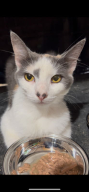 Meet Cardi – The Queen of Sass, Snacks, and Shenanigans! Got a thing for big ears, big energy, and even bigger personalities? Then Cardi is your girl! This young dilute calico diva is bringing the drama, the charm, and the zoomies—all in one irresistibly adorable package. Cardi’s still trying to decide what she loves more: people or treats. (Spoiler alert: it's probably treats… unless you’re offering ear rubs… or toys… okay, it’s a tough call.) One thing’s for sure—toys are fabulous, playtime is essential, and your house will never be boring again. With her signature oversized ears and even more oversized attitude, Cardi is the kind of cat who turns every hallway into a runway and every cardboard box into a stage. She's high-energy, full of mischief, and totally lovable—especially if you're good at doling out snacks. Cardi is indoor only, and declawing is a no-go (she needs those toes for her dramatic pounces and impromptu zoomie performances). Ready for some Cardi chaos (and a whole lotta love)? This big-hearted beauty is waiting to steal the show—and your snacks!