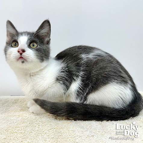 Please contact Lauren McCarty (laurenmc@luckydoganimalrescue.org) for more information about this pet.Sweet baby needs a forever home!CARMELLO NEEDS A FOREVER HOME! Name: Carmello Best Guess for Breed: Domestic Short Hair Age: 3 months as of 11/14/25 Est. DOB: DOB 8/12/25 SEX: Male Weight: 3.35 lbs as of 11/14/25 Coloring: Gray and White Type of Hair: Short Gets Along With: Because of his young age, Carmello will likely get along with other cats, dogs and kids with an acclimation period. We’re happy to help with tips and tricks! Currently Living at: foster in the DC area I am Looking For: My loving forever family! Hi! I’m Carmello, and I am a cute little kitten! I won’t ask for much- just some love, cuddles and lots of toys so I can run and play and be my kitten self. Litter: Carlito, Carmello What the Shelter Says About Me: Carmello and his brother, Carlito, were surrendered to our rescue as their family could no longer care for them and it was obvious that they had been well cared for. Carmello was very reserved in the beginning but never aggressive toward volunteers and caregivers. However after a very brief adjustment period, he became the sleek love monkey. He is an adorable little guy that doesn’t ask for much and loves anything he may get in the way of love and food. He and his brother play amicably and cuddle when it’s rest time. Carmello is easy to pet and hold and is comfortable now with all humans. In just a few short weeks his transition has been remarkable and he is very ready for another family and home. What my Foster Says About Me: Coming soon! Kitten Vetting Requirements: Your kitten may not be fully vaccinated upon adoption. You will be responsible for providing whatever remaining vaccines are needed to complete the kitten vaccine series. TO ADOPT: The adoption fee for adult cats is $200 ($350 for two cats adopted together). The adoption fee for a kitten (under 7 months old) is $220 ($380 for two kittens adopted together).If you are interested in adopting, please complete the Adoption Questionnaire online at bit.ly/adoptaluckycat. Lucky Dog Animal Rescue does our best to provide accurate information about the cats we have for adoption. That said, we cannot make any guarantees about age, breed or temperament. Thank you for contacting Lucky Dog Animal Rescue and helping to save a life! Please visit us online at www.luckydoganimalrescue.org . BE A FOSTER!!! Fosters make it possible for Lucky Dog Animal Rescue to save and care for homeless and abandoned dogs! To learn about fostering, please contact fostering@luckydoganimalrescue.org BE A SPONSOR!!!! Sponsors help Lucky Dog support the many dogs we save. To learn more about sponsorship, please contact info@luckydoganimalrescue.org !