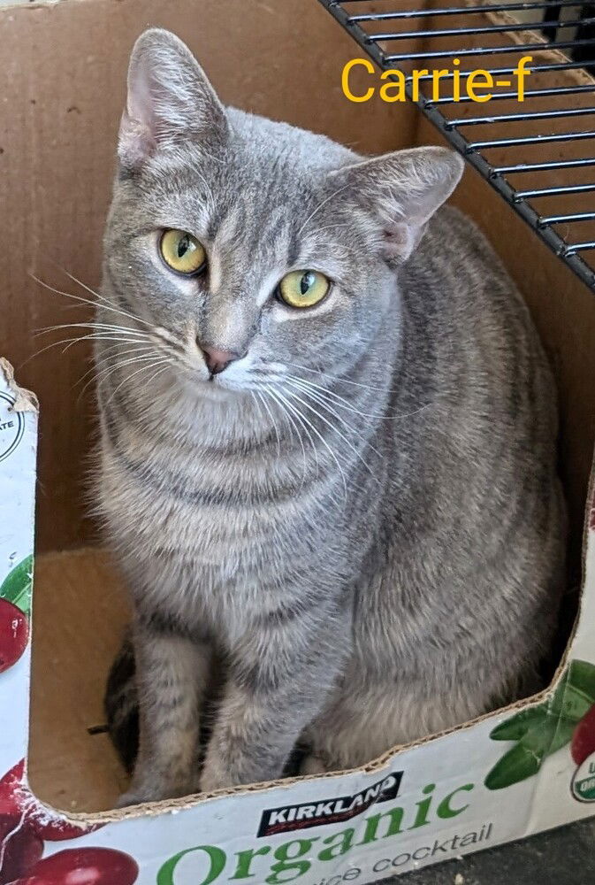 See Carrie’s HomepageGo to our official websiteYou can fill out an adoption application online on our official website.AVAILABLE FOR ADOPTION! Carrie is one of a litter of 7 kittens from Rialto and is a light grey tabby. Her mama has had multiple litters but will be getting spayed soon. Carrie has 6 "ABC" littermates: Annie, Bonnie, Dollie, Ernie, Frankie and Georgie. A-D are girls and the boys are E-G. They are super sweet kitties that have always gotten a lot of love from the family they live with. The adoption fee includes being spayed/neutered, treated for fleas and worms, current shots and being chipped. We also pay for the initial chip registration. Adoption events are held Sundays at the Fontana Petco 12-4pmhttps://petstablished.com/adoption_form/32024/genericApply on-line using the link to our application. Please be sure to use the species specific application for a dog or cat. Adoption events are held every Sunday, excluding holidays, at the Fontana Petco. The Fontana Petco is located at the corner of Sierra and Sierra Lakes Parkway, just off the 210 freeway,