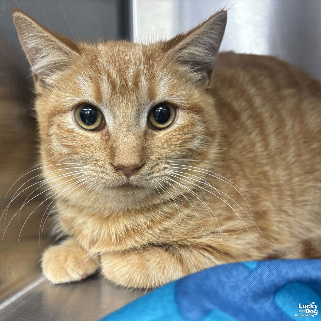 Please contact Lauren McCarty (laurenmc@luckydoganimalrescue.org) for more information about this pet.Pretty boy in search of her forever home!CARROTS NEEDS A FOREVER HOME! Name: Carrots Best Guess for Breed: Domestic Short Hair Age: 6 months DOB: 6/29/25 SEX: male Weight: 6lbs Coloring: Orange Tabby Type of Hair: Short Gets Along With: Because of his young age, Carrots will likely get along with other cats, dogs and kids with an acclimation period. We’re happy to help with tips and tricks! Currently Living at: Shelter – coming to the DC area soon! Litter: Ariel and Carrots I am Looking For: My loving forever family! Hi! I’m Carrots, and I am a cute little kitten! I won’t ask for much- just some love, cuddles and lots of toys so I can run and play and be my kitten self. What my Foster Says About Me: Coming soon! Kitten Vetting Requirements: Your kitten may not be fully vaccinated upon adoption. You will be responsible for providing whatever remaining vaccines are needed to complete the kitten vaccine series. TO ADOPT: The adoption fee for adult cats is $200 ($350 for two cats adopted together). The adoption fee for a kitten (under 7 months old) is $220 ($380 for two kittens adopted together).If you are interested in adopting, please complete the Adoption Questionnaire online at bit.ly/adoptaluckycat. Lucky Dog Animal Rescue does our best to provide accurate information about the cats we have for adoption. That said, we cannot make any guarantees about age, breed or temperament. Thank you for contacting Lucky Dog Animal Rescue and helping to save a life! Please visit us online at www.luckydoganimalrescue.org . BE A FOSTER!!! Fosters make it possible for Lucky Dog Animal Rescue to save and care for homeless and abandoned dogs! To learn about fostering, please contact fostering@luckydoganimalrescue.org BE A SPONSOR!!!! Sponsors help Lucky Dog support the many dogs we save. To learn more about sponsorship, please contact info@luckydoganimalrescue.org !