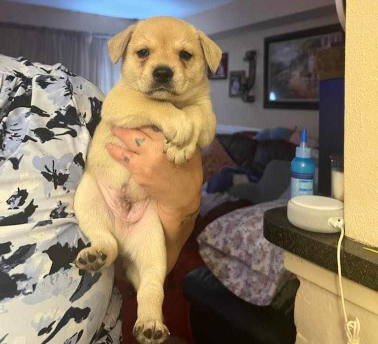 See Cassian’s HomepageGo to our official websiteYou can fill out an adoption application online on our official website. Meet Cassian, cass to his friends, is a 10-week-old Labrador retriever/Shepard mix that hails from the great state of Texas. Cassian's mom was picked up as a pregnant stray by animal control, and brought into rescue after her stray hold was up. Cass was born while in rescue and has received proper nutrition and age appropriate veterinary care the entire time. Case is a young, energetic dog who is full of personality. He has been working diligently on his leash-training with his current Texan Foster, and they have found that he and does better on a harness for walks than a collar. (We also recommend walking all dogs using a harness and not their collar for safety reasons) Case is also working on potty training, but is no where near fully trained. Consistency is key when potty training puppies. They all work on the following schedule.. sleep, eat, play, poop and repeat! taking your pup outside immediately upon waking up, bringing them back inside for breakfast, and then back outside again 20-30 minutes later to "do their business". Making sure not to play with him while he's supposed to be going potty, as puppies have notoriously short attention spans. Case is Kennel trained and takes his meals there, as well as any high value treats. This little guy is affectionate, playful, and full of energy. He loves to cuddle, chase his tail, and zoom around snatching up toys. Cassian is friendly with people of all ages and dogs of all sizes, though he can be a little shy at first—but he warms up quickly! He’s smart, eager to please, and even-tempered. While his siblings cry in their crates, Cassian peacefully snoozes, proving he’s a quiet and well-mannered pup. But once he's out, he’s ready for fun! If you’re looking for a goofy, loving, and intelligent companion, Cassian is your guy! Could Cassian be your perfect match? Cassian is from Texas. If you are interested in getting to know this animal better, please fill out an adoption application. An adoption application is the best way to show your interest in an animal and is not a binding contract. To learn more about Ruff Start’s adoption process and the care our foster animals receive, please visit our How to Adopt page. *Rescue puppies are notorious for losing their birth certificates before entering our rescue. We cannot guarantee the breed or size they will be full grown.* If you are unable to adopt but want to help this animal and others in our care, you can donate to support the medical and veterinary needs of all Ruff Start Rescue animals.