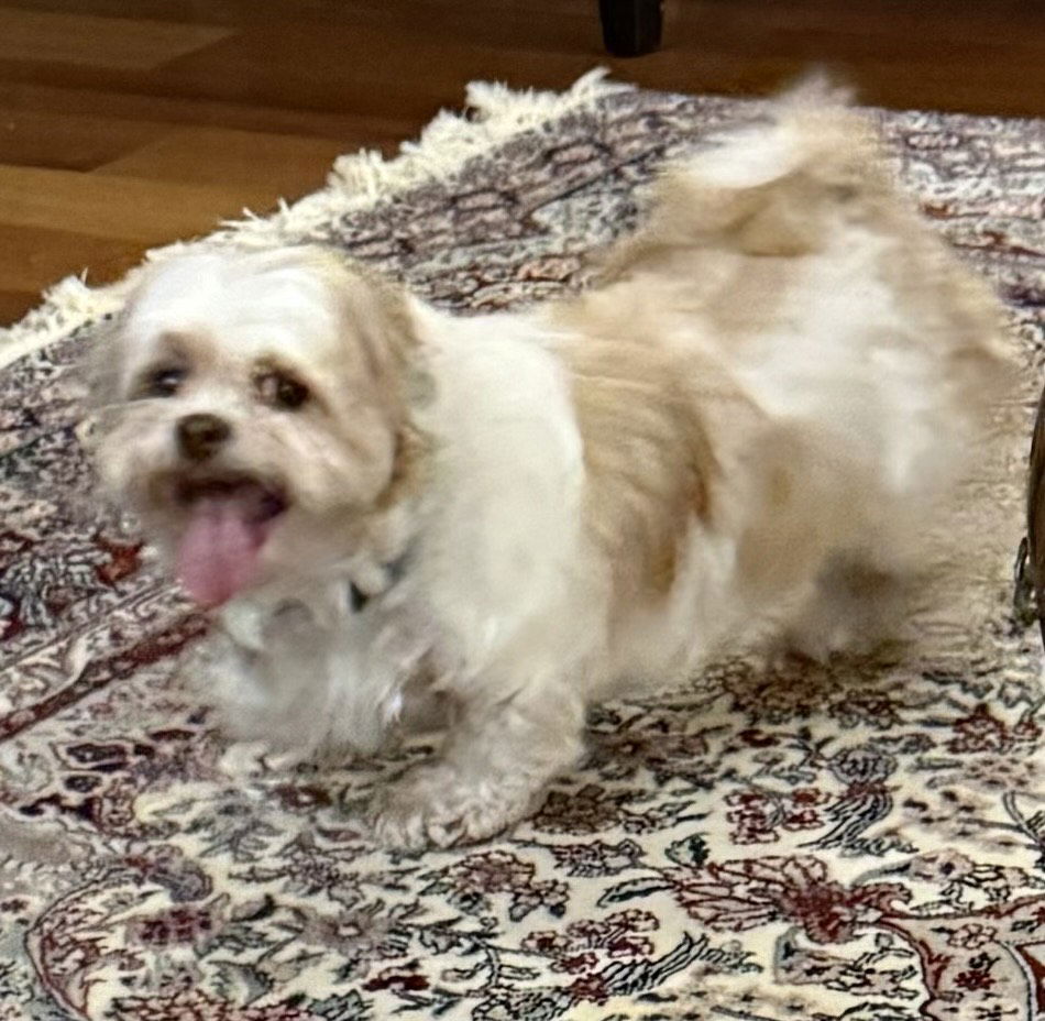 Meet Cassie Quinn , an 8-year-old Shih Tzu, 15-pound bundle of joy who brightens every room she enters! This happy girl is always smiling—she grins with her whole face and keeps her tongue out like she’s posing for a photo. Her joy is contagious, and she’ll fill your home with love and laughter. Cassie adores being outside, going for walks, and running playful laps around the house during her daily zoomies. A fenced yard or plenty of indoor space to romp around would make her happiest. She walks nicely on a leash and enjoys both leisurely strolls and bursts of playful energy. When it’s time to relax, Cassie loves lounging on her pet bed. She’s crate trained and sometimes tucks herself in at night, though she’s perfectly fine sleeping outside her crate too. Cassie is pee-pad trained and working on transitioning back to going potty outdoors. She gets along well with small and medium dogs and previously lived with two Shih Tzus. Cassie would also be happy as an only dog, as long as someone is home most of the time—she craves company and can be quite vocal when left alone. Because of that, she’s best suited for a single-family home (no apartments or townhouses, please). Cassie is friendly with men, women, and kids of all ages, though she’s a bit shy at first and needs a moment to warm up. She’s best with families or active seniors who enjoy walks but can assist her with stairs—she manages short step-downs fine but can’t climb full flights. Health-wise, she recently had a small skin infection that was treated (the vet had to shave the area), and she’ll soon have a dental cleaning, likely with a few teeth removed. One of her back legs sticks out a little when she squats, but it doesn’t slow her down at all. Cassie Quinn is a cheerful, affectionate companion who’s ready to share her endless smiles with a loving family—her happiness truly shines from the inside out! An Adoption Application for this dog can be found and submitted online. http://www.angelsrescue.org/adopt/adoption-forms Please be sure to like our Facebook page: https://www.facebook.com/angelsrescue. Email inquiry@angelsrescue.org Note: Some apartments and neighborhoods have breed restrictions. We verify rental policies and adhere to any regulations. Please ensure you understand those restrictions before choosing a dog.