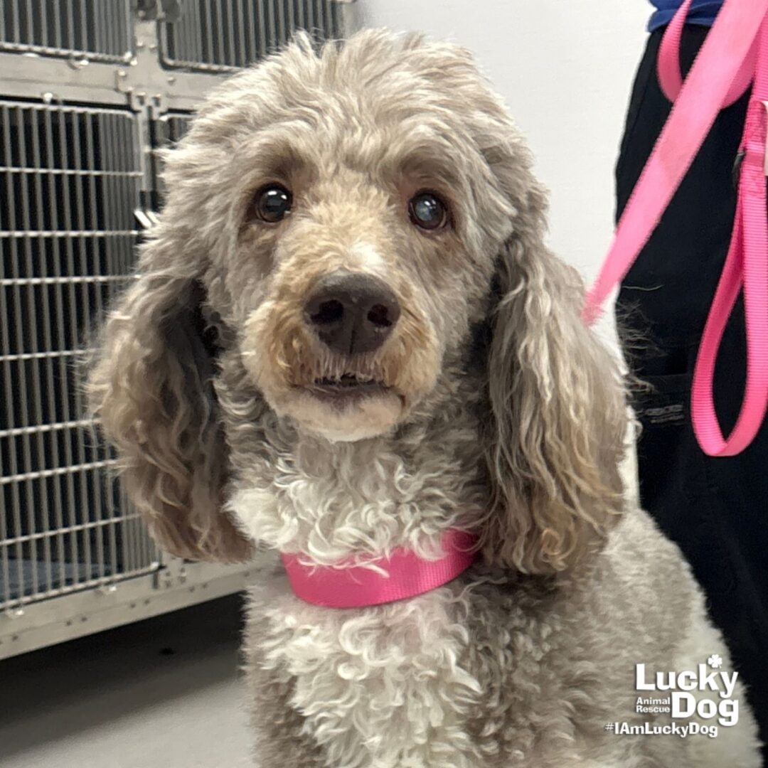 Please contact Destiny Sibert (DestinyS@luckydoganimalrescue.org) for more information about this pet.Poodle Ready to Give Oodles of LoveCELESTE NEEDS A FOSTER OR FOREVER HOME!!!! Name: Celeste Best Guess for Breed: Standard Poodle Best Guess for Age: 8 years as of March 2025 Gender: female Approximate Weight: 42 Lbs Gets Along With: Other Dogs! We haven’t seen her with cats or kids but she can be tester. Currently Living At: Lucky Dog’s South Carolina rescue campus. She needs a foster or adopter to secure her freedom ride to the DC area Celeste is Looking For: Her forever home! This sweetie landed in the shelter through no fault of her own. She’s firmly closed that chapter and is eager to get her new one. The one where she gets her own humans. Where she gets to go on long sniffy walks in the neighborhood, meeting new pup and people pals – and explore the rest of the world! Quality kibble and a cushy dog bed are on her wish lost as well, and she wouldn’t refuse to try puppacinos and other tasty treats either. You know what, though? She’s way out of the puppy yips and as a wise, experienced dog knows what’s most important in life: Being safe and loved and under her own roof. That’s right at the top of her wish list. In exchange she promises adoring gazes and loyal companionship for all her days. At 42 pounds, that’s a pretty huggable snuggle buddy and a solid presence by your side. How about it? What the Rescue Campus Staff Says About Me: Celeste has low-to-medium energy and has done well with the older kids at her South Carolina foster. She would benefit from more socialization with other dogs. What My Foster Says About Me: Celeste needs a foster! Lucky Dog cannot guarantee any dog is housebroken. All of our dogs are working on their crate training. TO ADOPT: The adoption fee for this dog is $460, which includes the cost of routine vetting, including vaccinations, spay/neuter, and heartworm testing. If you are interested in adopting, please complete the Adoption Questionnaire online at bit.ly/adoptaluckydog Lucky Dog Animal Rescue does our best to provide accurate information about the dogs we have for adoption. That said, we cannot make any guarantees about age, breed or temperament. CONNECT WITH US: Please visit Lucky Dog Animal Rescue online at www.luckydoganimalrescue.org or follow us on social media at https://www.facebook.com/LuckyDogAnimalRescue and https://www.instagram.com/luckydoganimalrescue/ BE A FOSTER!!! Fosters make it possible for Lucky Dog Animal Rescue to save and care for homeless and abandoned dogs! To learn about fostering, please contact fostering@luckydoganimalrescue.org! BE A SPONSOR!!!! Sponsors help Lucky Dog support the many dogs we save. To learn more about sponsorship, please contact info@luckydoganimalrescue.org.
