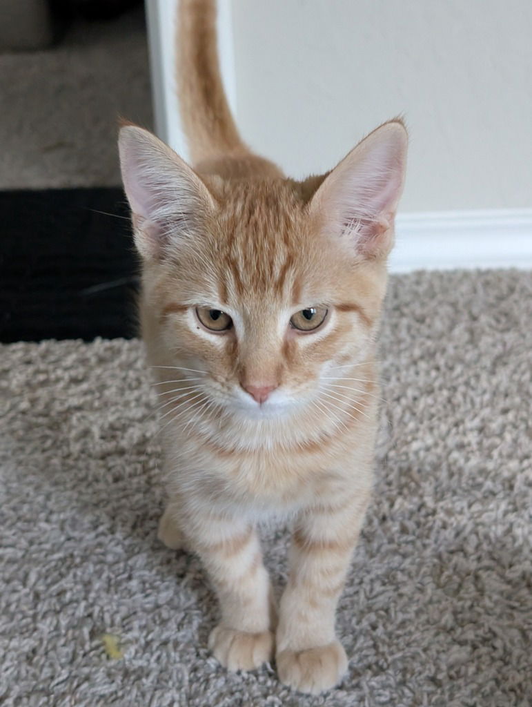 Chae is a little bundle of sunshine wrapped in bright orange fur. He has a gentle spirit and a heart full of love, and brings warmth to every corner he curls up in. He’s the kind of cat who purrs before you’ve even touched him — as if just being near you makes him happy. Chae loves the simple joy of being close to his people. His sweetness is steady and genuine, like a small, glowing light that never goes out.To inquire about adopting this cat please complete an adoption application at tinyurl.com/ccapadoptions Once you submit an adoption application, a foster will reach out within 48 hours to schedule a meet-and-greet or ask any additional questions. If you haven’t heard back within that time, please contact **adoptions@sanantonioferalcats.org** so we can follow up. If the cat you’re interested in isn’t listed in the dropdown menu, it may be pending adoption or recently adopted, but the website hasn’t been updated yet. Feel free to email us for confirmation. Thank you for choosing to adopt one of our amazing cats!