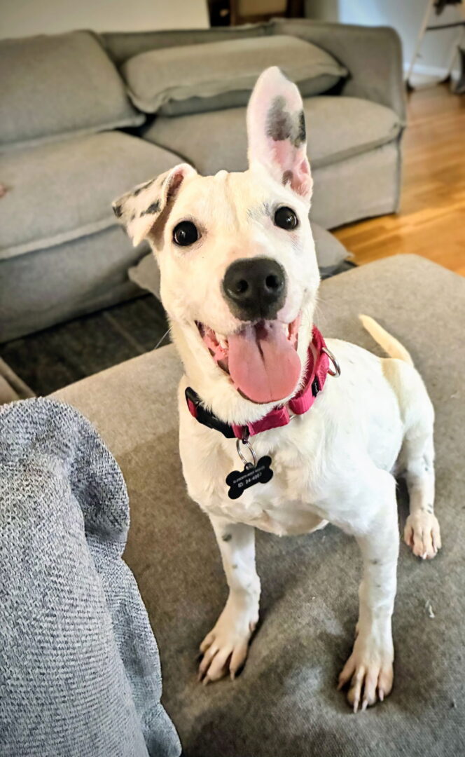 Chaka is a beautiful 5-month-old, 20 lb white puppy with the absolute best ears! She’s a playful, happy, and healthy pup who loves everyone she meets — people and dogs alike. While she’s a normal puppy in every way, Chaka does have one unique trait: she is deaf. That doesn’t stop her from living life to the fullest and spreading joy wherever she goes! Deaf dogs can make wonderful pets, and with a little extra communication training, they are just as easy to love and live with as any other pup. Chaka is microchipped and up to date on vaccines. Her adoption fee is $495, and she is more than ready to find her forever family. Apply at EHRDOGS.ORG and ask for CHAKE LOUISIANA.