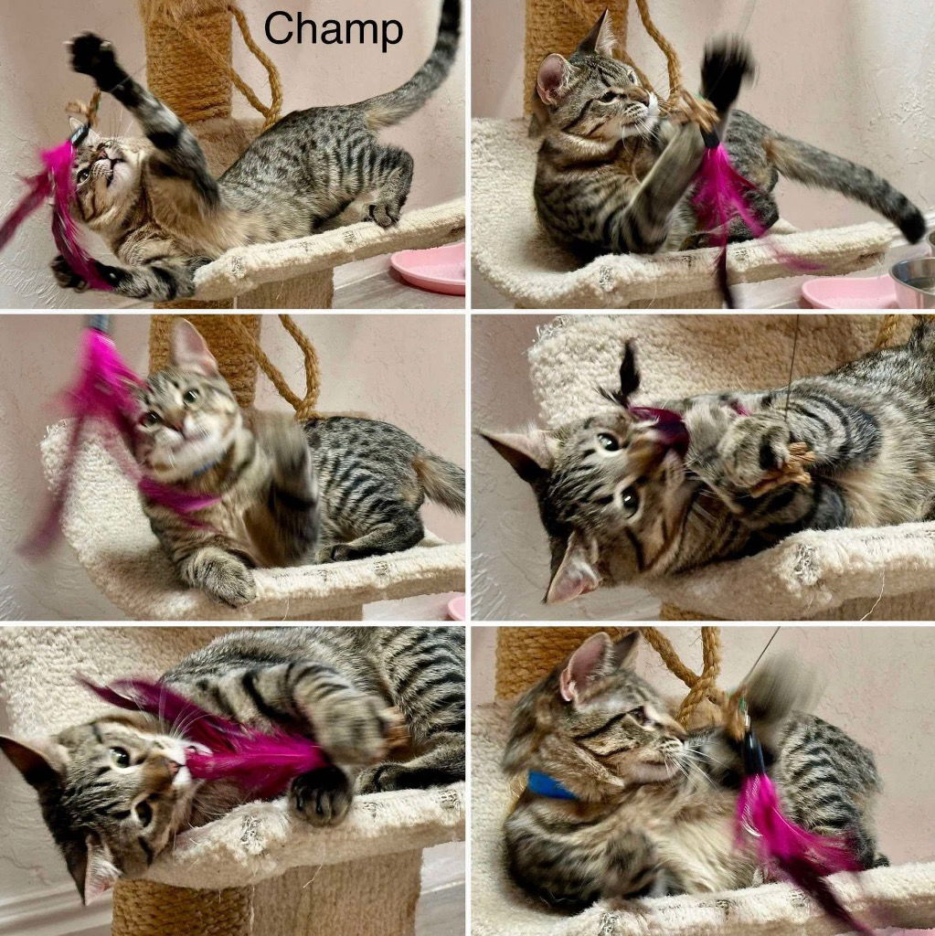 Champ is a tabby sweetheart! He loves other cats and humans. He loves to play and would love a buddy to play with. He can be a bit shy at first, but loves cuddles.He is neutered, microchipped, dewormed, and up to date on vaccinations. Please fill out an application at https://stgeorgepaws.org/adopt or meet him at PAWS Tuesday thru Saturday from 11-3. Our pets are spayed/neutered, microchipped, dewormed and current on vaccinations before their adoptions are finalized. Please call PAWS at 435-688-9748 for more information about this pet. If you are interested in adopting, please visit www.stgeorgepaws.org/adopt and submit an application. Our office hours are 11 AM-3 PM Tuesday through Saturday. We are closed Sunday and Monday.