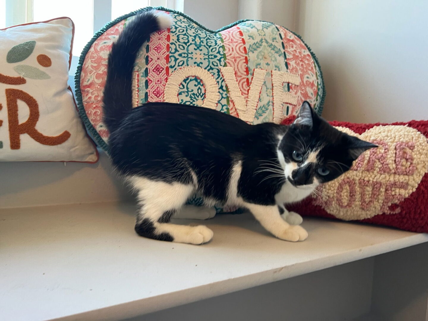 I am currently available for adoption from my foster home. If you’re interested in adopting me, fill out an application on our website www.carmaoc.org Hi my name is Chani. I am a very happy girl and a purr baby. When you look in my enchanting two-toned blue eyes, I will start purring and melt your heart. I love to cuddle and be held, like a baby or on your shoulder. My hobbies are playing ball (or spring or stick), looking out the window at the birds and playing wand. I have a long black tail that has a white tip and my foster mom thinks it is adorable when I put it down backwards along my body. My foster dad nicknamed me Q-tip because of my tail. I am pretty outgoing and like other cats. I also will roll around looking for belly rubs. My adoption fee is $175. That includes spay/neuter, microchip, FIV/FeLV combo test, current vaccines and health check.