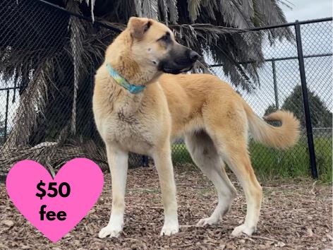 Meet Charli the Anatolian Shepherd mix. She came to the Shelter as a stray so we do not know about her life before the Shelter. Staff have observed that she is a giant puppy, loveable and energetic! She has been eager and wiggly for attention in and out of kennel, can be a bit busy and scattered on leash, but very willing. We are not sure if she is house trained but she has kept a tidy kennel since her arrival. This energetic gal would benefit from an active guardian who will take her out for hikes and offer other enrichment opportunities. She enjyos plyaing fetch. Charli has met dogs at the Shelter and has solicitied play with a vareity of dogs, although she may not be every dog’s cup of tea due to her size and energy. Any resident dogs are recommended to meet at the Shelter prior to adoption. We do not have any history of Charli with children or cats. Now through February 15th, we are hosting “Adopt Your Valentine” where adoption fees are reduced to $50. The adoption fee includes all age appropriate vaccinations, spay/neuter and microchips. Please note: Our Santa Cruz location’s Shelter hours are 11-6pm, 7 days a week! Although clients can walk through and see any animals in their kennels during open hours, we end “meet and greets” (aka meeting an animal out of the kennel) at 4:30pm every day. If you’d like to meet an animal out of the kennel, please arrive before 4:00pm to allow for time to discuss individual animals and meet them.