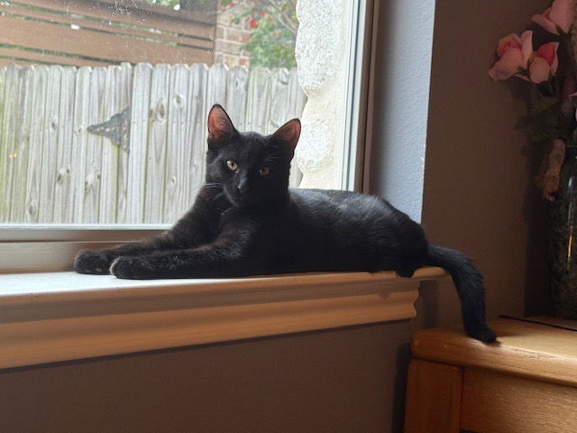 Join The Peanuts Gang?Lucy and Charlie are a bonded pair of young siblings who will bring joy and laughter and energy into your home.They are both extremely affectionate, bright, curious, playful, and cuddly. They purr so loudly they vibrate. They are very good at entertaining themselves as well as you, and they are quiet kitties. (They don’t talk very much unless they talk to each other. I think I’ve seen Charlie make a silent meow.)Charlie is an all black male kitten. He has a beautiful shiny coat and angular long nose. He looks like a movie star from another era. He gets along great with his sister but would probably also get along with other cats and children. He loves sleeping next to you. He will cuddle up on your chest or stomach and loves belly rubs. He loves a good window that he can look out. He’s bouncy and curious kitten and loves playing with kicker toys and wand toys. He is definitely a foodie he loves his food and treats. He is looking for his forever home with his special someone and will make a nice companion. These little rescue kitties are looking forward to meeting you and becoming a loving part of your family.To inquire about adopting this cat please complete an adoption application at tinyurl.com/ccapadoptions Once you submit an adoption application, a foster will reach out within 48 hours to schedule a meet-and-greet or ask any additional questions. If you haven’t heard back within that time, please contact **adoptions@sanantonioferalcats.org** so we can follow up. If the cat you’re interested in isn’t listed in the dropdown menu, it may be pending adoption or recently adopted, but the website hasn’t been updated yet. Feel free to email us for confirmation. Thank you for choosing to adopt one of our amazing cats!