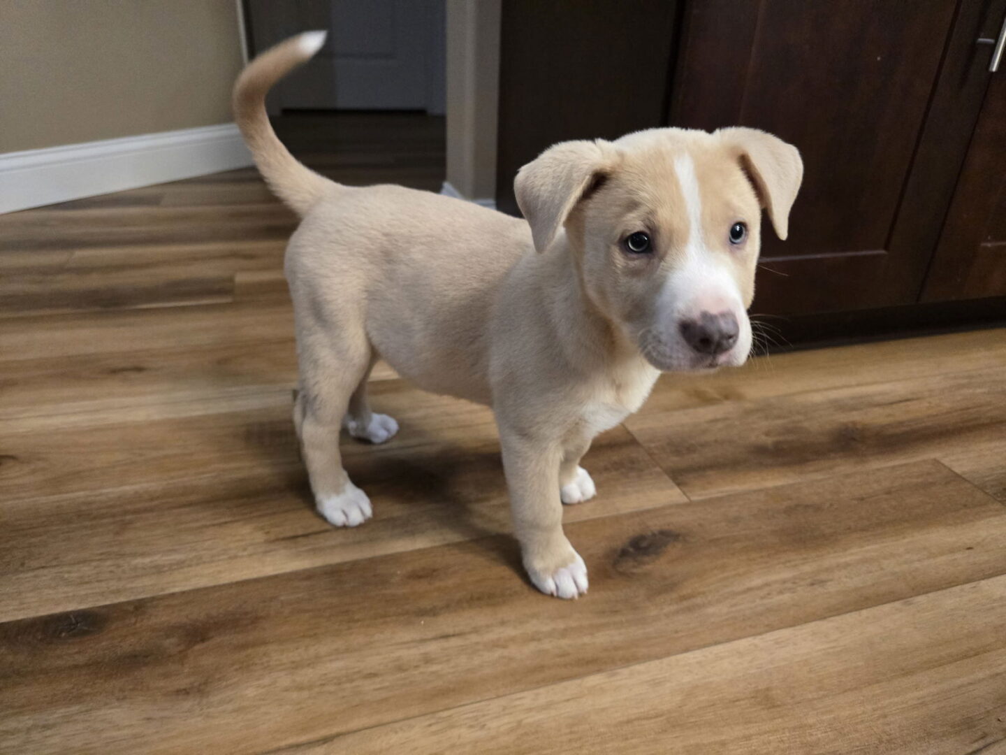Charlie is an energetic puppy who loves to play. He is weighing in at 14 lbs at 10 weeks so he will likely be a medium-large sized dog when full grown. We don't know his breed – just that he is cute! He gets along with the other large and small in his foster home. He loves toys and snuggles. He is sleeping through the night and working on potty training. Charlie's adoption fee is $300.00 which includes 3 rounds of shots, neuter, microchip and 1 month of heartworm preventative. If you are interested, please complete the Adoption Application on our website at a4apetpantry.org Disclaimer: Visual breed identification in dogs is unreliable, so for most of our dogs, we are only guessing at breed mix.