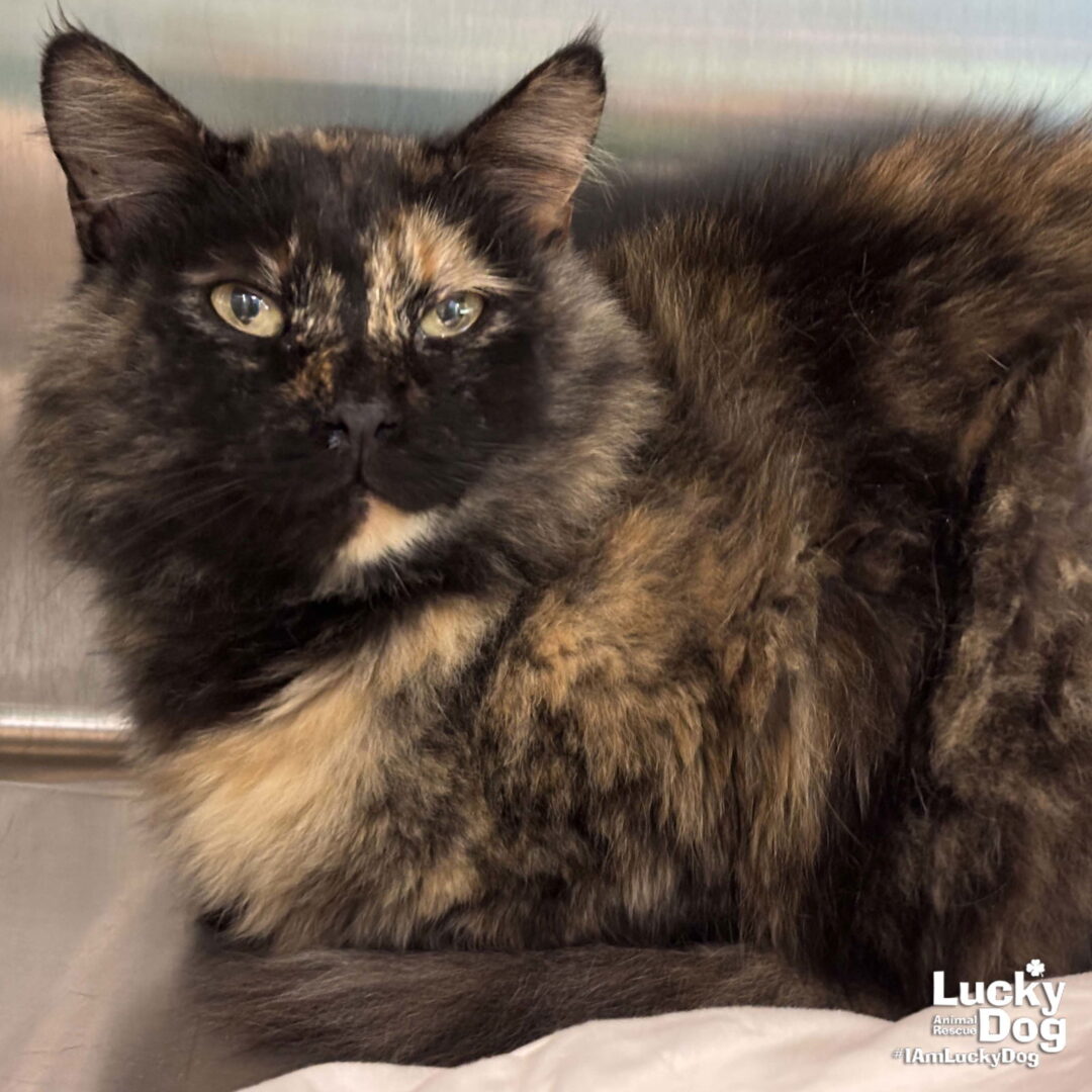 Please contact Lauren McCarty (laurenmc@luckydoganimalrescue.org) for more information about this pet.Sweetheart, Charlie, looking for her forever family!CHARLIE NEEDS A FOREVER HOME! Name: Charlie Best Guess for Breed: Domestic Long Hair Age: 5 years old Estimated DOB: 2/4/2020 SEX: Female Approximate Weight: 10 lb Coloring: torti Type of Hair: Long Gets Along With: Because of her young age, Charlie will likely get along with other cats, dogs and kids with an acclimation period. We’re happy to help with tips and tricks! Currently Living at: Check out our Lucky Cats on Instagram at the Meo Maison Cat Cafe Méo Maison Cat Cafe (1336 Wisconsin Ave NW, Washington, DC 20007). You can come visit me at Méo Maison Cat Cafe during the cafe’s operating hours! If you would like to visit the cafe, please make an appointment on their website (meomaison.com). If you want to adopt me, you will need to complete the adoption process through Lucky Dog Animal Rescue. I am Looking For: My loving forever family! Hi! I’m Charlie, and I am a cute little kitten! I won’t ask for much- just some love, cuddles and lots of toys so I can run and play and be my kitten self. What my Foster Says About Me: Coming Soon! Kitten Vetting Requirements: Your kitten may not be fully vaccinated upon adoption. You will be responsible for providing whatever remaining vaccines are needed to complete the kitten vaccine series. TO ADOPT: The adoption fee for adult cats is $200 ($350 for two cats adopted together). The adoption fee for a kitten (under 7 months old) is $220 ($380 for two kittens adopted together).If you are interested in adopting, please complete the Adoption Questionnaire online at bit.ly/adoptaluckycat. Lucky Dog Animal Rescue does our best to provide accurate information about the cats we have for adoption. That said, we cannot make any guarantees about age, breed or temperament. Thank you for contacting Lucky Dog Animal Rescue and helping to save a life! Please visit us online at www.luckydoganimalrescue.org . BE A FOSTER!!! Fosters make it possible for Lucky Dog Animal Rescue to save and care for homeless and abandoned dogs! To learn about fostering, please contact fostering@luckydoganimalrescue.org BE A SPONSOR!!!! Sponsors help Lucky Dog support the many dogs we save. To learn more about sponsorship, please contact info@luckydoganimalrescue.org !