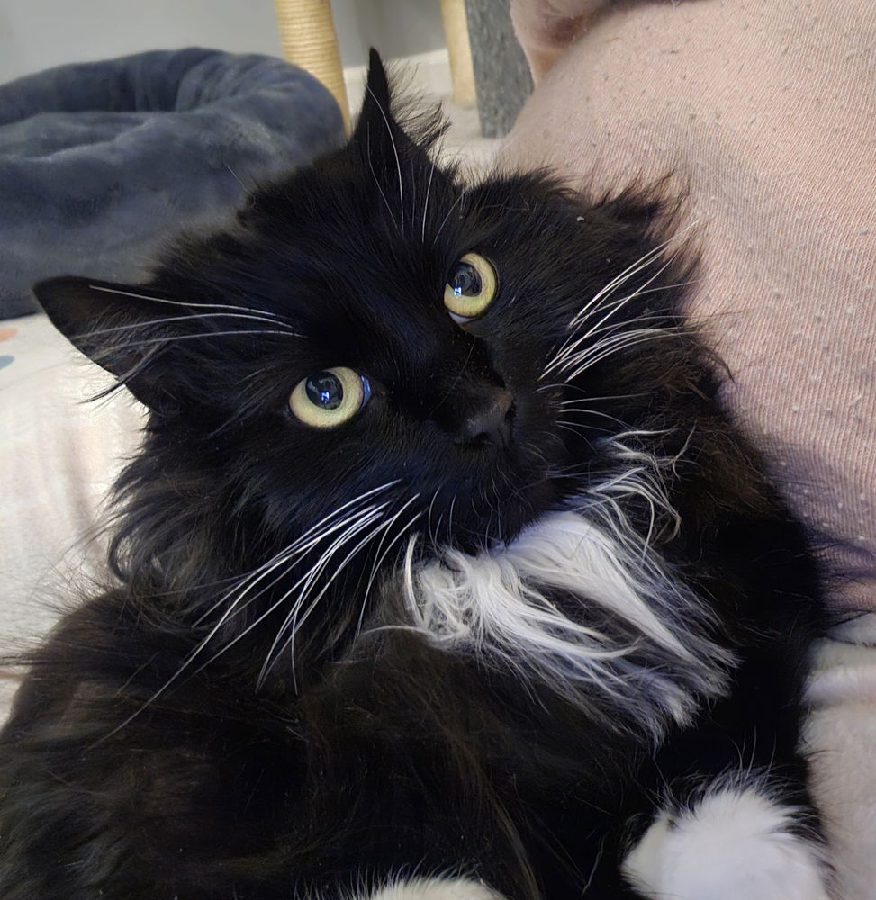 Introducing the delightful Lady Charlotte, affectionately known as "Lottie," a refined 8'month-old lady of the highest calibre. With her striking black and white coat, she exudes an air of regal elegance, her luxurious mane and pristine white chest reminiscent of a true aristocrat. Lottie’s enormous white whiskers and fluffy tail only add to her distinguished appearance, making her the picture of feline grace.While initially a tad bashful, Lottie is a creature of great loyalty and once she places her trust in you, her heart is yours entirely. She is the very definition of a devoted companion, purring with great delight as she curls up in your lap or rests her dainty head upon your chest. Her sweet, gentle nature shines through once she feels at ease, and she will reward your patience with an abundance of affection.Lottie and her noble brother, Winston, were rescued after being trapped outside, and now this precious lady is seeking a home where she can truly flourish. If you are in search of a gentle and loving feline who will shower you with affection once she feels secure, look no further than the lovely Lottie.