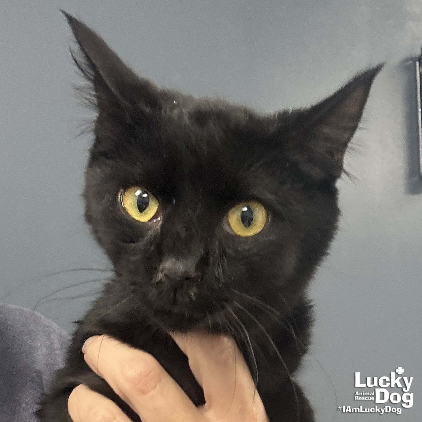 Please contact Lauren McCarty (laurenmc@luckydoganimalrescue.org) for more information about this pet.Mini panther Chauncey looking for his forever family!CHAUNCEY NEEDS A FOREVER HOME! Name: Chauncey Best Guess for Breed: Domestic Short Hair Age: 5 months as of 1/3/25 DOB: 8/3/24 SEX: Male Approximate Weight: 4lbs Coloring: Black Type of Hair: Short Litter: Chauncey, Theo, Sal, Zoe, Phee Gets Along With: With proper integration, Chauncey will likely get along with other cats, dogs and kids with an acclimation period. We’re happy to help with tips and tricks! Currently Living at: Shelter…coming to DC area soon! I am Looking For: My loving forever family! Hi! I’m Chauncey, and I am a cute little kitty! I won’t ask for much- just some love, cuddles and lots of toys so I can run and play and be my kitty self. TO ADOPT: The adoption fee for adult cats is $200 ($350 for two cats adopted together). The adoption fee for a kitten (under 7 months old) is $220 ($380 for two kittens adopted together).If you are interested in adopting, please complete the Adoption Questionnaire online at bit.ly/adoptaluckycat. Lucky Dog Animal Rescue does our best to provide accurate information about the cats we have for adoption. That said, we cannot make any guarantees about age, breed or temperament. Thank you for contacting Lucky Dog Animal Rescue and helping to save a life! Please visit us online at www.luckydoganimalrescue.org . BE A FOSTER!!! Fosters make it possible for Lucky Dog Animal Rescue to save and care for homeless and abandoned dogs! To learn about fostering, please contact fostering@luckydoganimalrescue.org BE A SPONSOR!!!! Sponsors help Lucky Dog support the many dogs we save. To learn more about sponsorship, please contact info@luckydoganimalrescue.org !