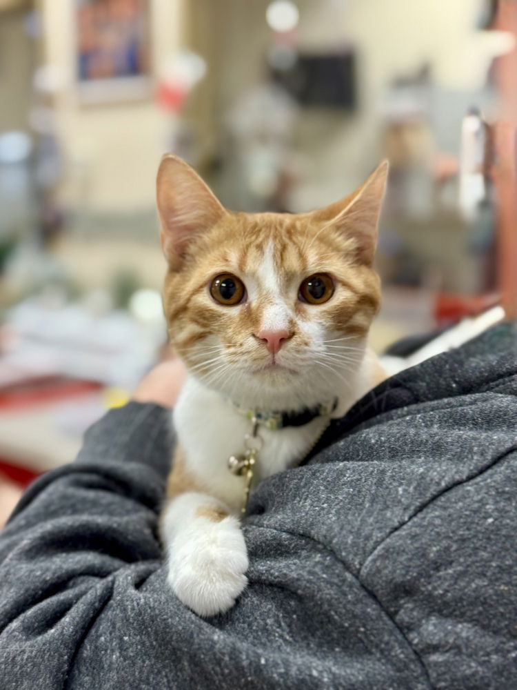 Meet Cheesecake — the ultimate people-loving, snuggle-seeking sweetheart!Cheesecake is an adaptable, affectionate kitty who truly believes everyone is his best friend. He absolutely loves being around his people and will happily follow you from room to room just to keep you company. If he can’t find you, don’t worry—he’ll let you know with his adorable chatter until he does. This biscuit-making pro is always kneading up some love and is happiest curled up next to you, on you, or close by.Cheesecake enjoys toys, exploring his surroundings, and soaking up all the attention he can get. He would thrive in a home with other cats and people who are happy to have a constant companion—because this guy wants to be part of your day, all day. He does well with other cats and is currently learning how to be around dogs, making him a great fit for many types of homes.If you’re looking for a loyal, loving, velcro-kitty who brings warmth, purrs, and personality wherever he goes, Cheesecake might just be your perfect match.Stop by our weekly adoption events on Saturdays from 12-4 pm at 372 Townline Road in Mundelein, IL 60060 to meet our adoptable animals in person.Follow us on Facebook for additional updates and sneak peeks of new dogs! https://www.facebook.com/reachrescue