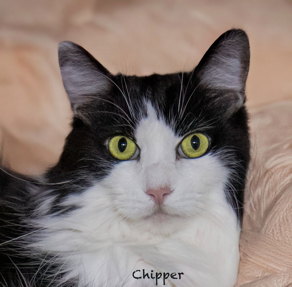 Chipper is a striking longhaired black-and-white tuxedo boy who came to the shelter with his sister and best friend, Sweetie, after their beloved human passed away. These two siblings have been together their whole lives and are looking for a forever home side by side. True to his name, Chipper is bright, good-natured, and full of affection. He loves people, enjoys attention, and will happily settle in as a loyal companion. With his soft, flowing coat, Chipper will need regular brushing to keep him comfortable and looking his best. Chipper and Sweetie have already known the love of a home, and now they’re ready to share that same devotion with a new family—together. Adopt Chipper and Sweetie, and you’ll welcome twice the love, twice the beauty, and twice the joy into your life.You can apply on line at www.hsvawl.org by completing the Adoption Application on the home page.