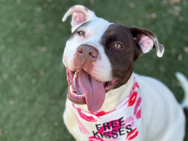 Sweet, young, beautiful girl! Was easy to leash today, felt a bit strong initially; not mouthy; treat motivated and took gently; generally, not jumpy but was very easy to redirect the couple of times she got overly excited; ran zoomies in the yard; a fun, playful girl who enjoyed being loved on!