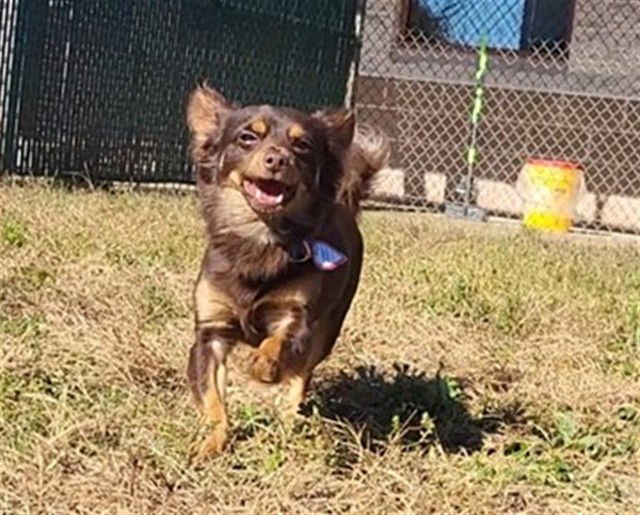While we don’t know details, we do know that Chocolate’s life was a bit ruff before he came to TJO. He has since shown us that his affection for humans has not diminished, and that his dislike of other dogs appears to be just as high. Chocolate is a good boy who will thrive with love and humans who understand how to keep him safe and set him up for success. OTHER PETS: Chocolate will not be placed in a home with another dog. [ONLY DOG]OWNER EXPERIENCE: When dogs are reactive to other dogs it usually looks like a big display of barking and lunging in order to keep other dogs away. While this display is intended to keep triggers away, if another dog insists on approaching it could escalate quickly and become a dangerous encounter. Chocolate is comfortable with handling and enjoys interacting with people once comfortable; this will help him develop a relationship using positive reinforcement while still setting him up for success. Someone experienced helping reactive dogs build confidence and avoid, or improve emotions around triggers, would be an even better fit! [Some Experience] KIDS: Chocolate is comfortable with handling and has enjoyed attention from people while at the shelter. He did not show much interest in toys, but there may be too many distractions to fully appreciate toys while at the shelter. Chocolate is friendly and would likely get along with most humans; any minors he would be living with should meet him prior to adoption, and all interactions with children should be actively supervised to keep everyone safe. [Likely (Must Meet First)]ACTIVITY LEVEL: Chocolate enjoys exploring the world around him, indoors or outdoors, and would likely enjoy daily neighborhood walks. Chocolate is always excited to see people and this excitement may translate into enjoying longer walks with people if care is taken to ensure he stays safe while doing so; harness walking is recommended. A combination of regular exercise and plenty of mental enrichment such as food puzzles and games will help meet his needs. [Couch Potato / Good Walking Buddy] VETERINARY CARE:[Routine]GROOMING: Regular brushing will ensure Chocolate’s coat stays clean and matt-free. [Routine Brushing]LEVEL OF TRAINING NEEDED: Positive reinforcement training will help Chocolate bond with his new owner and improve his self confidence as well as help him learn life skills and tricks. Patience, time, and happy associations will help him bond with his family as he acclimates to a new home. [Moderate]