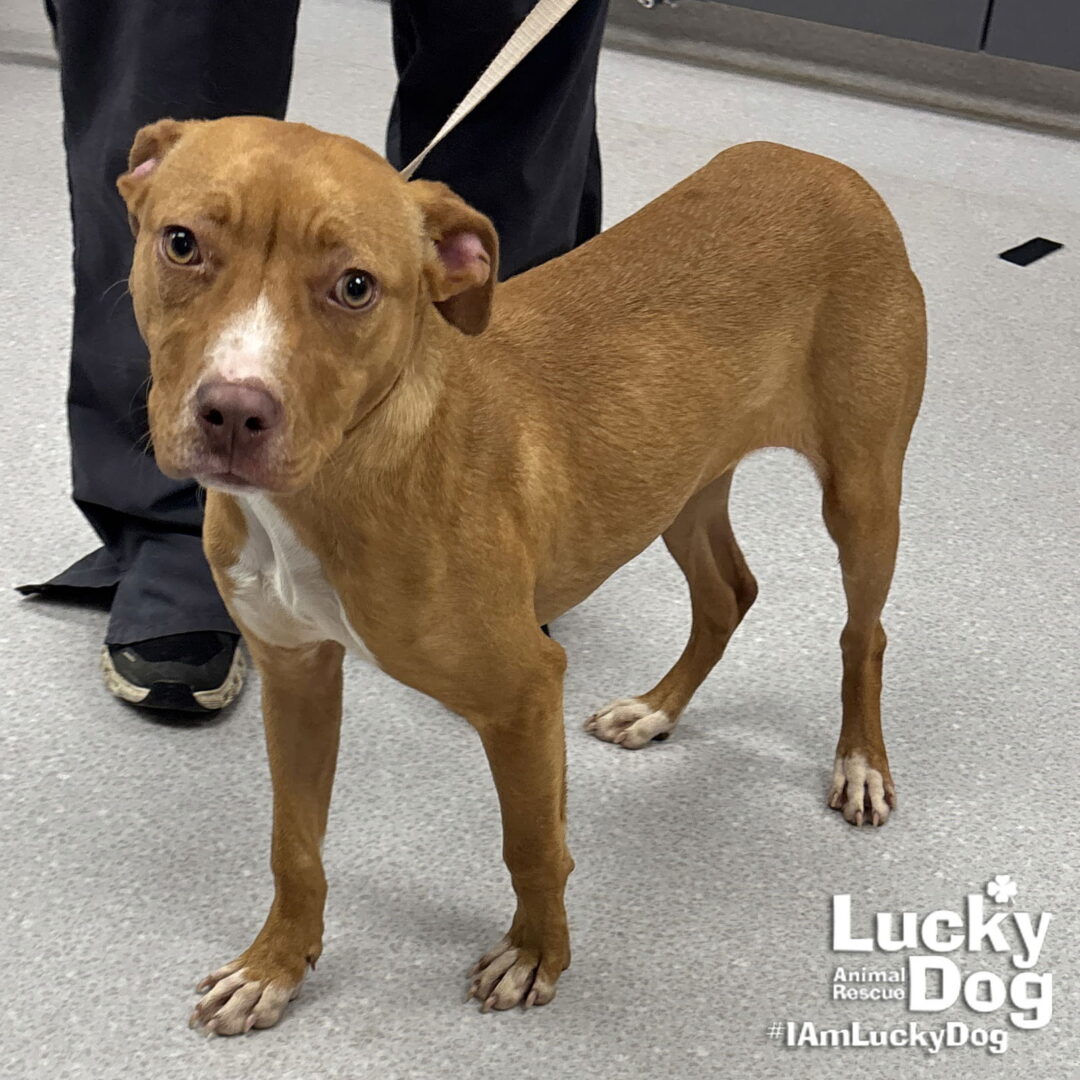 Please contact Anna Colllins (anna.collins@luckydoganimalrescue.org) for more information about this pet.sweet girl looking for a forever family! CHONG NEEDS A FOSTER OR FOREVER HOME!!!! Name: Chong Best Guess for Breed: Lab/Terrier Best Guess for Age: 11 mo as of December 2025 SEX: female Approximate Weight: 31 lbs Gets Along With: Other dogs! We haven’t seen her with cats or kids but we are happy to discuss integration techniques with any potential adopters! Currently Living at: Shelter — Chong is looking for a foster to come up to the DC area! Chong is Looking For: Meet Chong, an 11-month-old dog who’s looking for a place to call home. Still young and full of potential, she’s at an age where she’s learning about the world and what it means to be part of a family. Chong is searching for someone willing to get to know her and grow alongside her. Are you ready to bring her home and see where the journey takes you? What My Foster Says About Me: We will update this once Chong has spent some time in foster! Lucky Dog cannot guarantee any dog is housebroken. All of our dogs are working on their crate training. TO ADOPT: The adoption fee for this dog is $460, which includes the cost of routine vetting, including vaccinations and spay/neuter. If you are interested in adopting, please complete the Adoption Questionnaire online at bit.ly/adoptaluckydog . Lucky Dog Animal Rescue does our best to provide accurate information about the dogs we have for adoption. That said, we cannot make any guarantees about age, breed or temperament. Thank you for contacting Lucky Dog Animal Rescue and helping to save a life! Please visit us online at www.luckydoganimalrescue.org . BE A FOSTER!!! Fosters make it possible for Lucky Dog Animal Rescue to save and care for homeless and abandoned dogs! To learn about fostering, please contact fostering@luckydoganimalrescue.org! BE A SPONSOR!!!! Sponsors help Lucky Dog support the many dogs we save. To learn more about sponsorship, please contact info@luckydoganimalrescue.org !