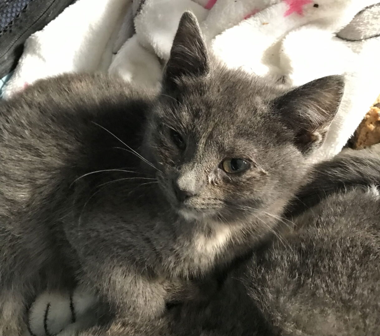 12/24/24 Two 6-week old kittens were brought to PFA for TNR. Too young, too sweet and have URI so that's not happening. Trapper is pregnant and has two large dogs. She needed us. In foster with Chris Kalmar.