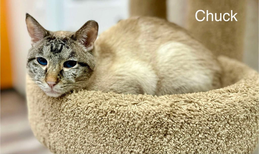 Chuck is one handsome gentleman. He has a very calm demeanor and loves to be pet and loved on. He is a Siamese Tabby and has the most beautiful markings and blue eyes.Come meet this 14 year old at PAWS today! Our pets are spayed/neutered, microchipped, dewormed and current on vaccinations before their adoptions are finalized. Please call PAWS at 435-688-9748 for more information about this pet. If you are interested in adopting, please visit www.stgeorgepaws.org/adopt and submit an application. Our office hours are 11 AM-3 PM Tuesday through Saturday. We are closed Sunday and Monday.