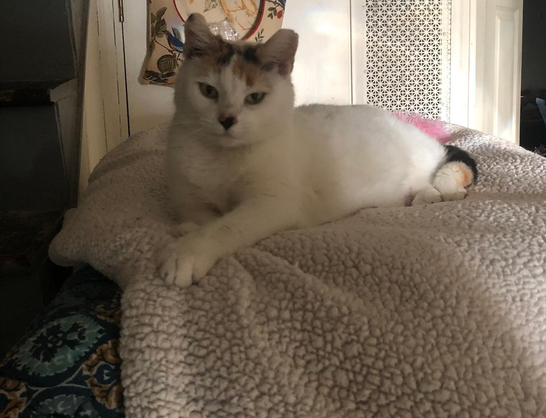 See Cindy’s HomepageGo to our official websiteYou can fill out an adoption application online on our official website.Cindy was found by a person when her house burnt down and her owner died. Cindy was staying inside the burnt house and coming out to find food when someone spotted her and started to feed her. She was feeding her for 3 months but called Four the Paws when the weather started to get cold. Cindy went to a foster home where she was warm and had blankets to lay on. Cindy is a bit chubby because she loves to eat food and her chicken snacks. She is really laid back and doesn't play much but loves to lay on her thick blankets and walk around to see what is going on or to look out the window. We think it will be best if she is an only cat in the household she really doesn't like the other fosters and will hiss at them when she is walking by them. She loves to be petted on her head and will purr up a storm. Cindy was already spayed, received her 1st FVRCP vaccine, dewormed, received flea medication, and tested negative for feline leukemia/FIV. Please consider giving this girl a new home where she can be loved. To adopt Cindy, please complete the online application at www.fourthepaws.org. Cindy's adoption fee is $130.00.