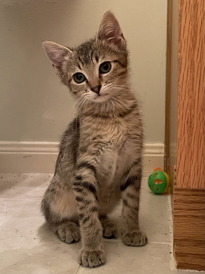 Est DOB 01/01/2025 We’re looking for homes for our kittens where any children are over the age of 5. If everyone in your family works/goes to school full time and you don’t have any other pets, please consider adopting a companion for your kitten. They are much happier when they have a buddy to play with. $175 adoption fee includes vaccinations, Feline Leukemia/FIV test, and spay/neuter surgery.Like us on Facebook – search Mutts & Meows – and help even more pets find loving homes.