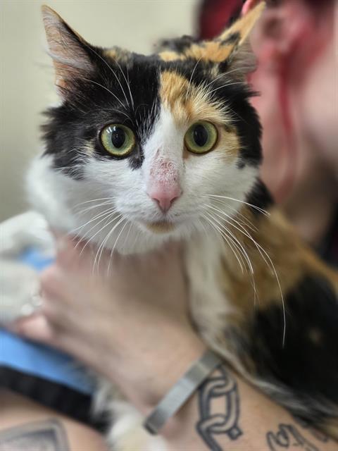 Meet Claire – Your New Furry Friend!Looking to add a bundle of charm and affection to your home? Claire isa beautiful Calico cat with a personality as colorful as her coat! Claire is friendly, playful, and loves cuddles. She’s the perfect companion whether you’re relaxing at home or looking for a snuggle buddy after a long day.Claire is not just a pretty face—she’s loving, gentle. Her friendly personality makes her a joy to have around, and she’s sure to brighten up your days with her playful antics and affectionate nature.Give Claire the loving forever home she deserves and let her bring warmth, joy, and a splash of calico color into your life!The Adoption Fee Includes:- initial feline distemper combination vaccination- first deworming or stool check- rabies vaccination (for animals over 3 months of age)- 24 Petwatch microchipping- flea treatment/preventative- spaying or neuteringAdoption Cost: $75.00FELV/FIV Testing provided for an additional fee of $35.00. Encouraged for multi cat household.