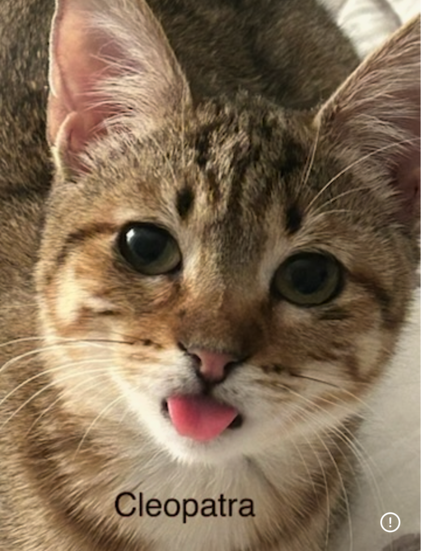 See Cleopatra’s HomepageGo to our official websiteCleopatra EDOB: July 2025 Hi, my name is Cleopatra! My foster mommy says I am quite the entertainer! I constantly want to play and often want to snuggle! (she says I’m the best little nighttime snuggler ever!) My foster mommy also says that my chirps sound like water dripping!! and I hardly ever meow, but I do when I want something! Playing is really my thing and I love other kitties as long as they will play with me! I also love those little springs and string toys! OMG! They are my favorite. So I’m looking for a special somebody to love me and snuggle with me and play with me. Are you that special person? I will love you forever. Luv, Cleo ❤️