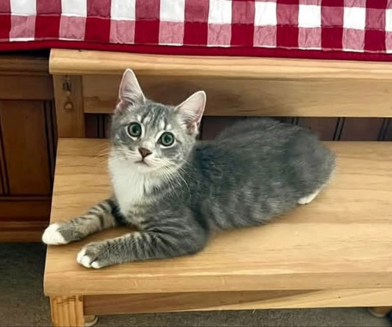 Hi, my name is Cloud. I am a five month old, male, gray tabby kitten. I am fun-loving, playful, friendly, and affectionate. I get along with dogs and cats, and enjoy attention from humans. I am happy to be pet and held, and will show my satisfaction with purrs. I like bedrime snuggles at the beginnjng and wnd of the day. I enjoying playing chase and wrestling with my brother Stormy. I also like to be entertained with fishing wand toys. I am still a kitten, so playtime and stimulation are important to me. I am litter boxed trained and have good scratching manners. If you are looking for a cuddly and social companion, you should consider adding me to your family. I am neutered and have had age-appropriate vaccines.