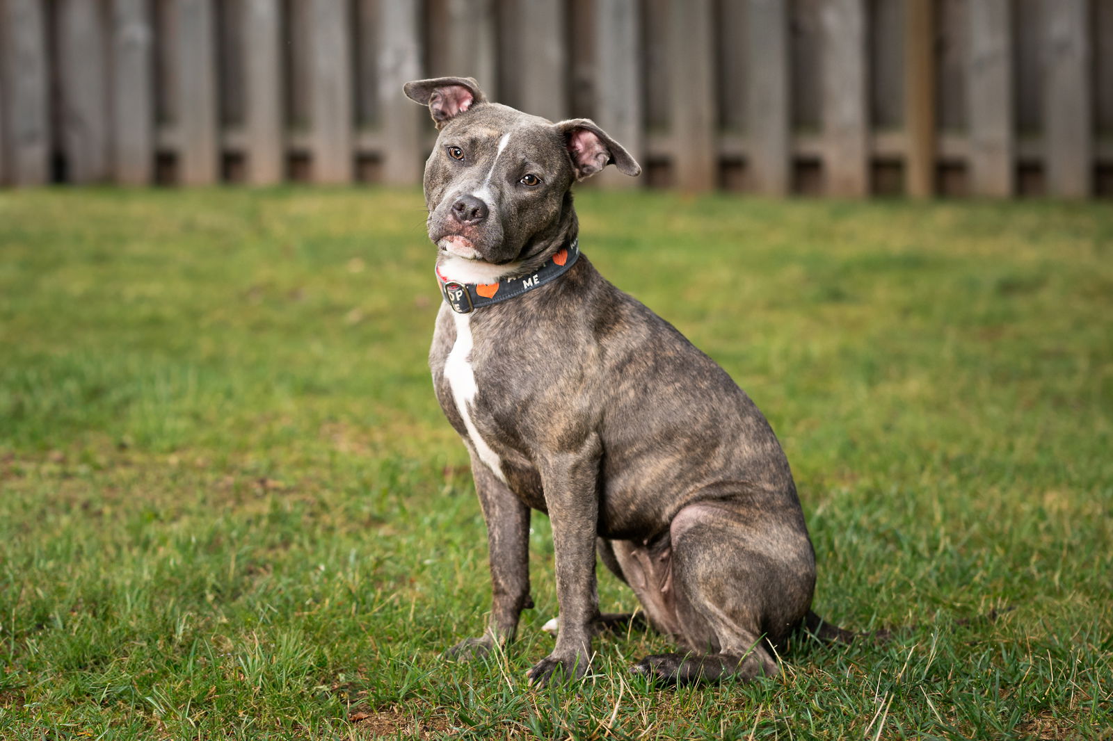Clover is teeny at under 40 lbs and full grown. But her size is no indication of her cuddling skills—they’re expert level! Clover adores people and is such a goofball. Since her time with us, she’s grown leaps and bounds. Her leash skills have improved, her ability to be left alone has improved, and she’s house-trained! Clover would love a family that lives in a quiet neighborhood and has a yard. She doesn’t require a ton of exercise (medium energy girl!), but busy areas are a bit much for her. As if it isn’t obvious, Clover is also so beautiful. Her blue brindle coat and perpetual puppy looks make everyone fall in love with her. Looking to adopt a petite, super sweet, all around great pup? Apply to adopt Clover! Our data base requires us to give an animal a breed. The breed given to the dog is our best estimate, and should not be used to predict future behavior.