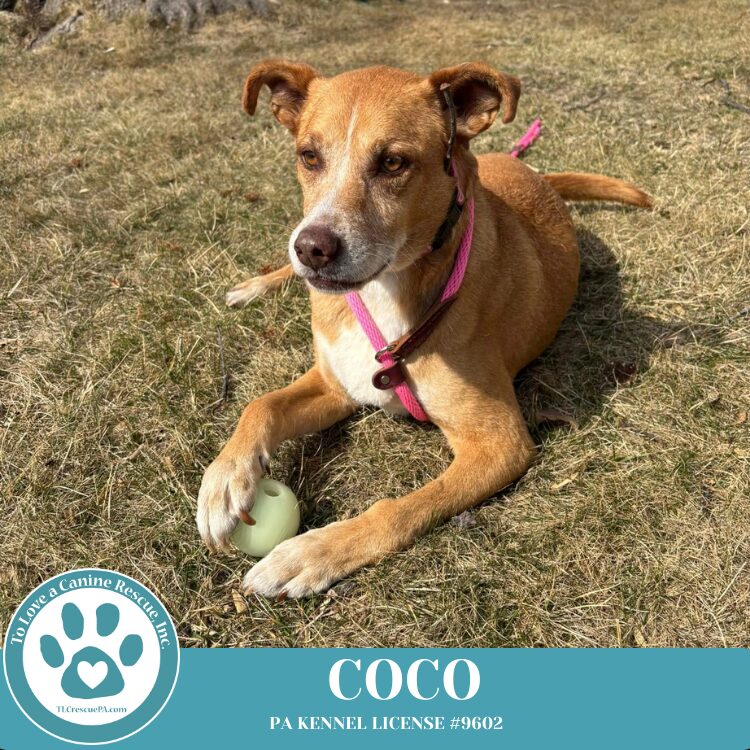 Meet Coco! Breed: Australian Shepherd/Lab Mix Estimated Age: 12/18/2018 Sex: Female – Spayed Weight: 40 lbs Currently up to date on all age-appropriate vaccinationsThings to Know: Rescued from Mississippi Coco was brought to a vet to be euthanized after an animal attack, but the vet saw her strong spirit and believed she could recover. With expert care and a dedicated caregiver, Coco made a full recovery and is now a happy, healthy, and loving pup Incredibly sweet and loves having her belly and ears scratched Loves people of all ages and sizes. Greets her foster family with tail wags and licks Calm, well-mannered, and very gentle with relaxed energy Will play fetch but doesn't have tons of stamina – more of a cuddler Very quiet overall; rarely barks (only when she saw squirrels through the door) Loves attention but isn't overly needy Doesn't beg for food or climb on furniture Easy to walk on leash with calm behavior Enjoys exploring the neighborhood on walks. Not bothered by cars Coco has free roam of the downstairs of her foster home with no issues Housetrained Dog-friendly Cat friendly – sniffed and walked away Looking for a loving and committed forever home to provide her with the care and love she deservesLearn more and apply to adopt at TLCrescuePA.org/adoptInterested in fostering? Join our 100% foster-based team at www.tlcrescuePA.org/foster #AdoptDontShop #RescueDog #FosterDog #AussieLabMix #DogsofInstagram #ForeverHome #TLCRescuePA #RescuePup #AdoptCoco